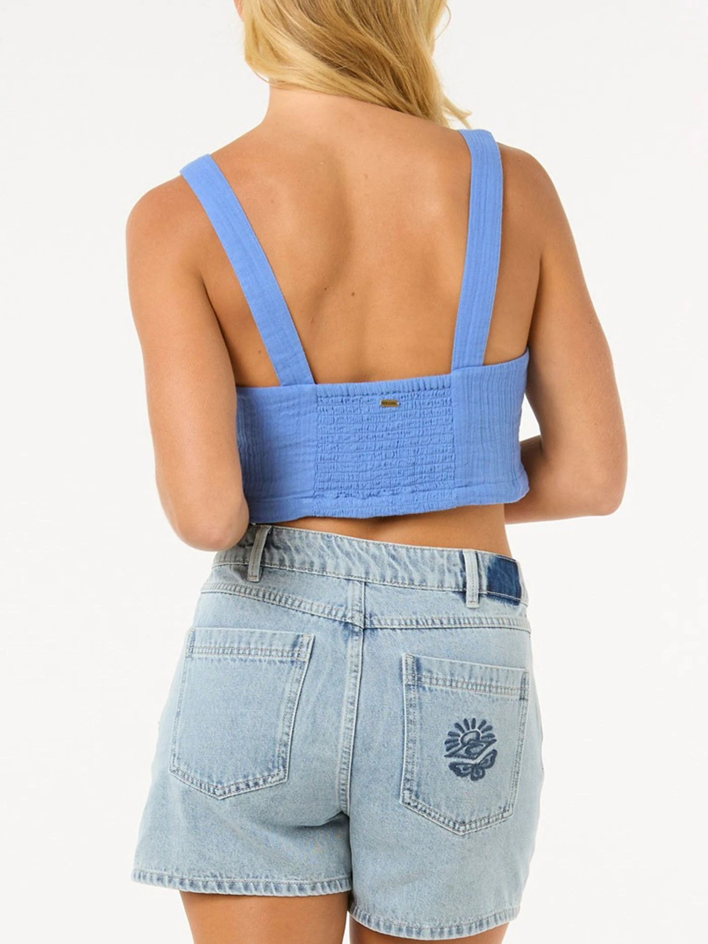 The Premium Surf Crop brings that laid-back beach vibe right into your wardrobe. Crafted from cotton double weave gauze, this tank is as breezy and comfortable as a day at the coast. The all-over yardage print infuses this crop with bold, tropical vibes, while the garment wash gives it a soft, lived-in feel that you’ll never want to take off. With a standard fit, it’s perfect for those sunny beach days, whether you’re catching waves, cruising around town, or simply relaxing in the sand. Its easy-to-wear style pairs perfectly with your favorite shorts, skirts, or denim, giving you that effortlessly cool look every time.
