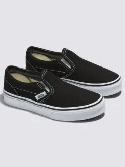 Classic Slip-On Black/True White Shoes (Kids)(Vans Classic Slip On Black True White Shoes Kids Co)