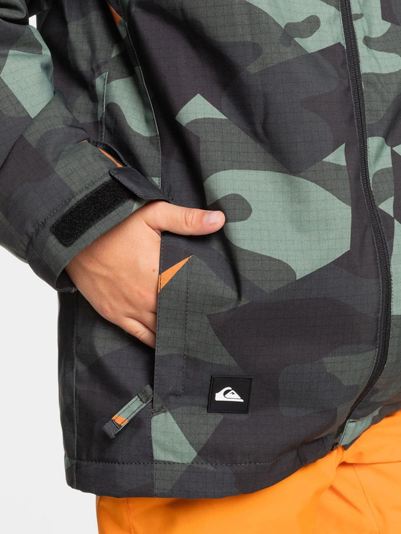 Fly under the radar with this boys’ Mission camo snow jacket from Quiksilver. Crafted with mostly recycled materials, it features waterproof 10K DryFlight® technology and warm, breathable WarmFlight® insulation. The modern, slimmer fit gives a contemporary look, while the helmet-compatible hood and powder skirt keep the elements at bay. Gear up for the mountain with this youth winter essential. Featured here in the Puzzle Camo Sea Spray colorway.