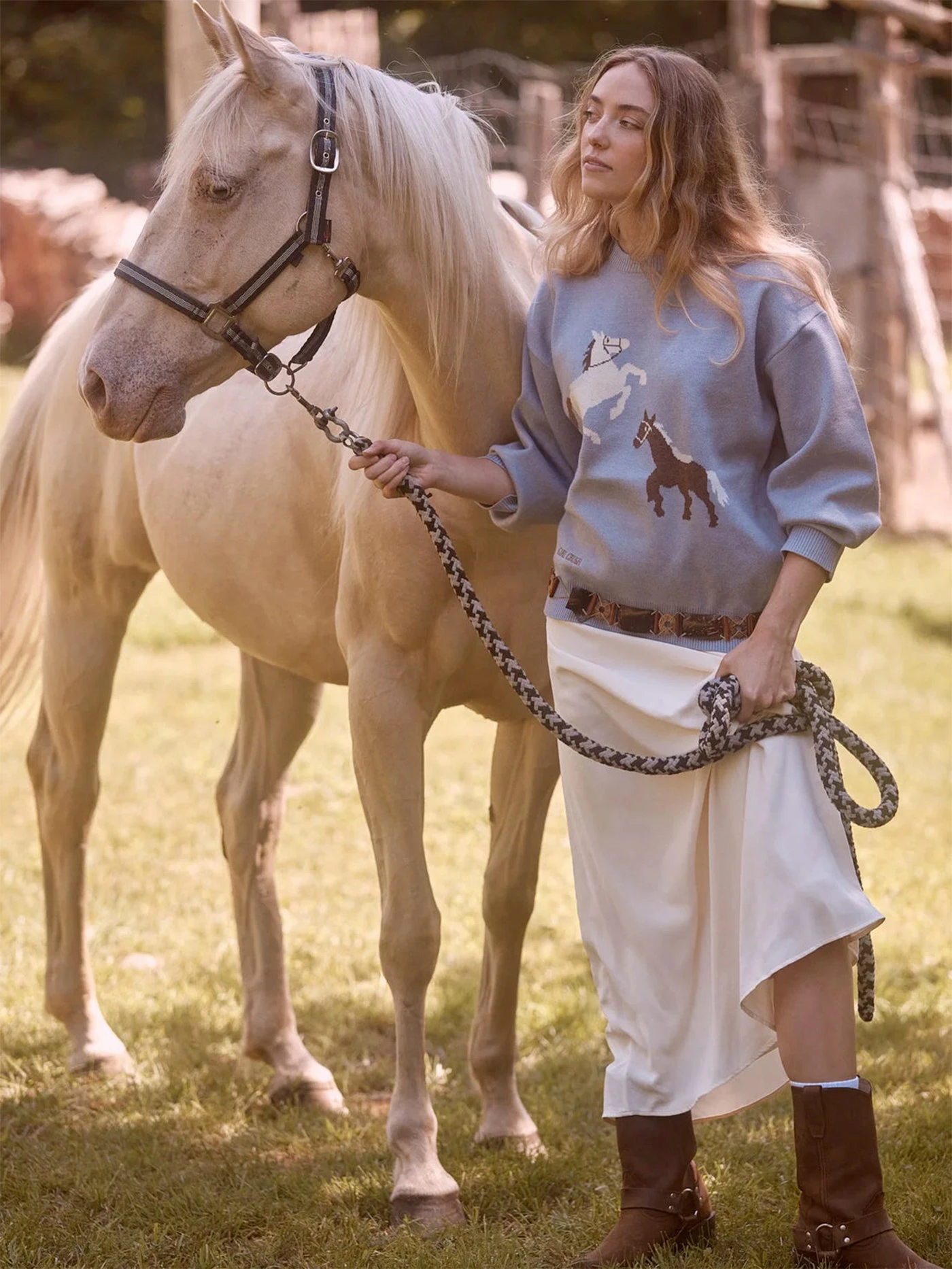Le Pull «Ride or Die » est fait pour ceux qui n’ont pas peur de galoper droit dans le vent. Tissé de deux chevaux complices, il évoque la puissance des liens indéfectibles. Il parle d’amitié, de loyauté, de passion brute. Dans un tissu si doux et moelleux, il réchauffe comme une couverture jetée sur les épaules au retour d’une longue chevauchée.