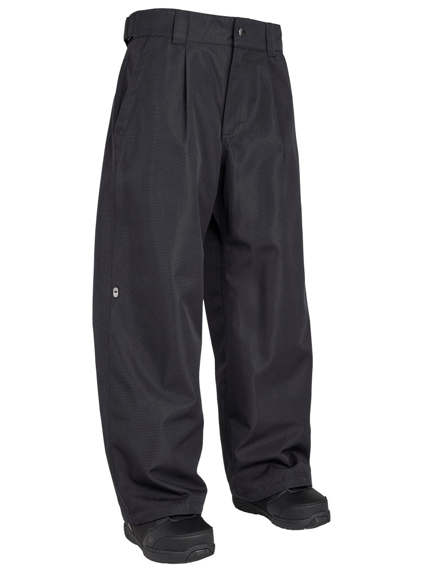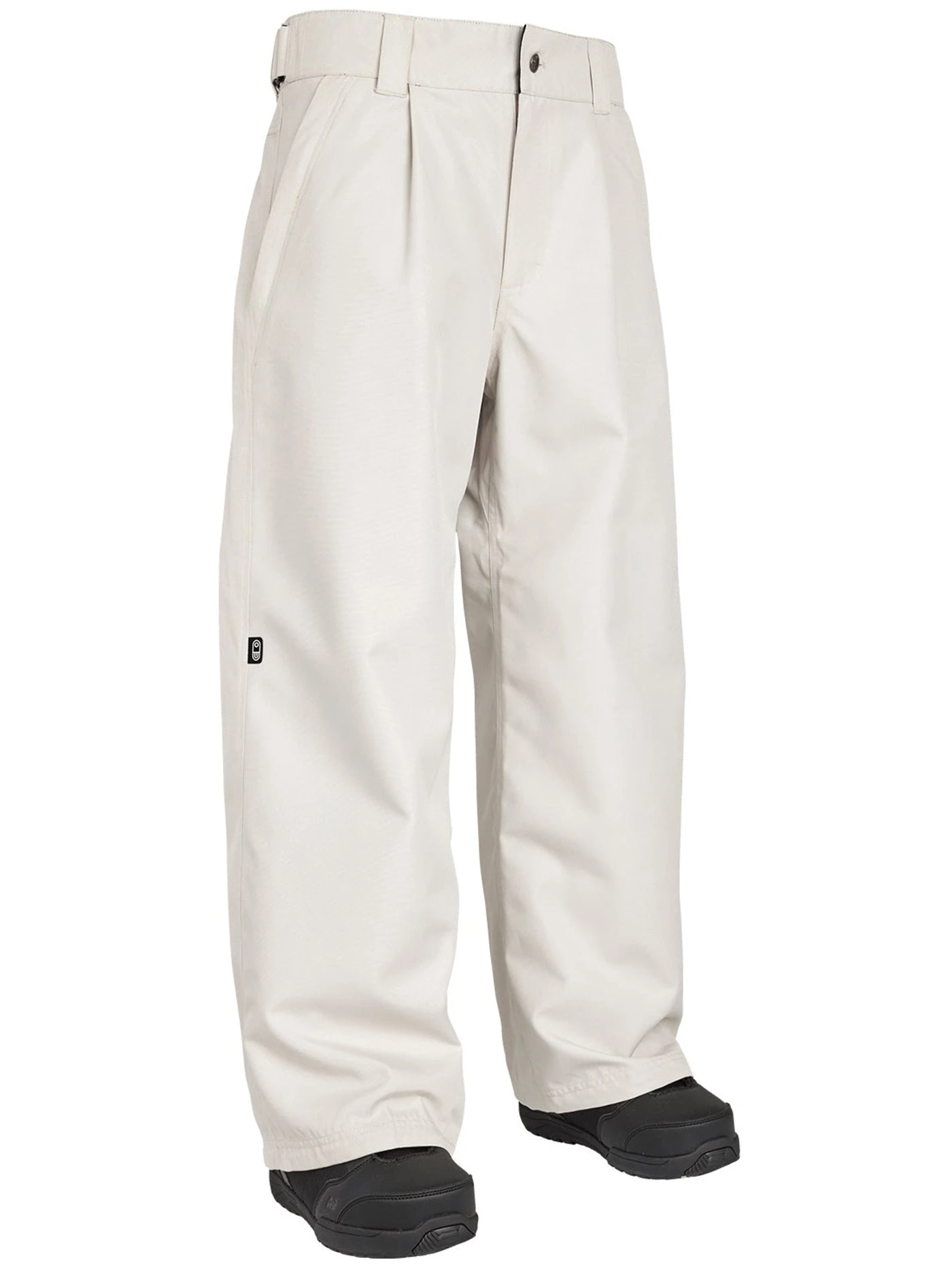 These are waterproof baggy jeans, the staple of late 90’s snowboarding. They have pleats, belt loops, adjustable waist cinch, 4 secure pockets, and even leg gaiters to keep out the snow. The high denier fabric is durable with a 10,000mm waterproof rating and critical seam taping. The cut is Baggy Plus some, with ample room to move for things like shifties, reverts, and even shifty-reverts. New for 24/25 is slightly baggier fit and option to cinch cuff.