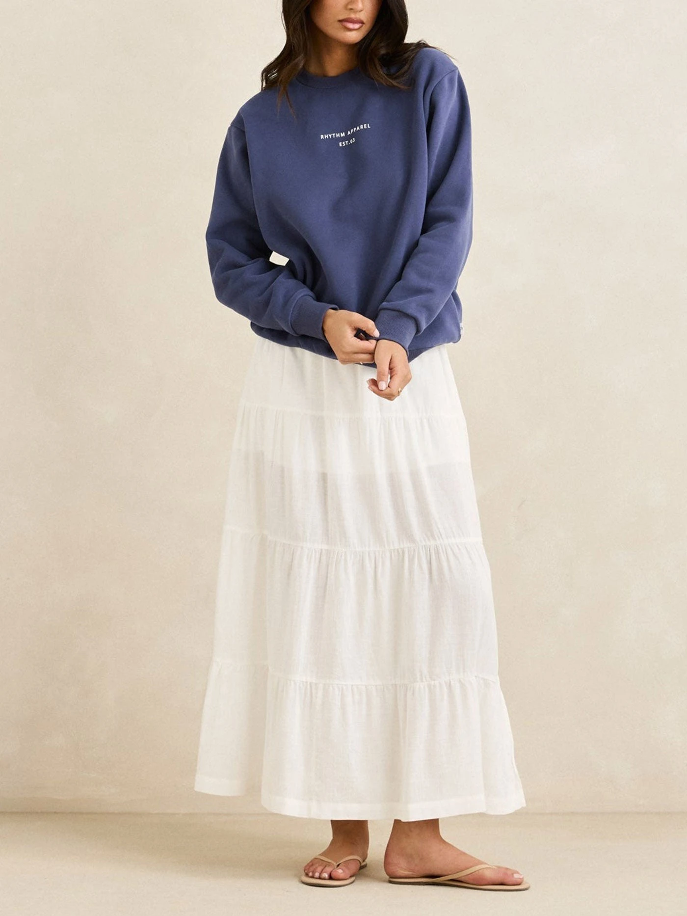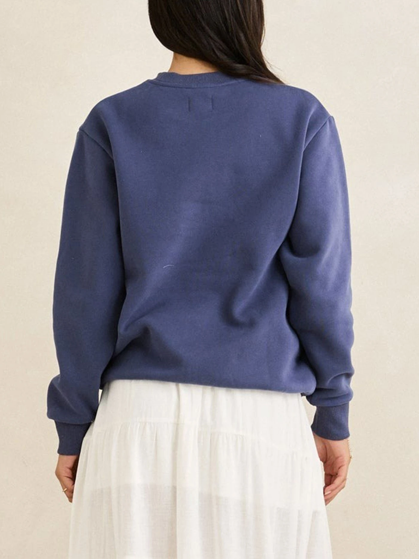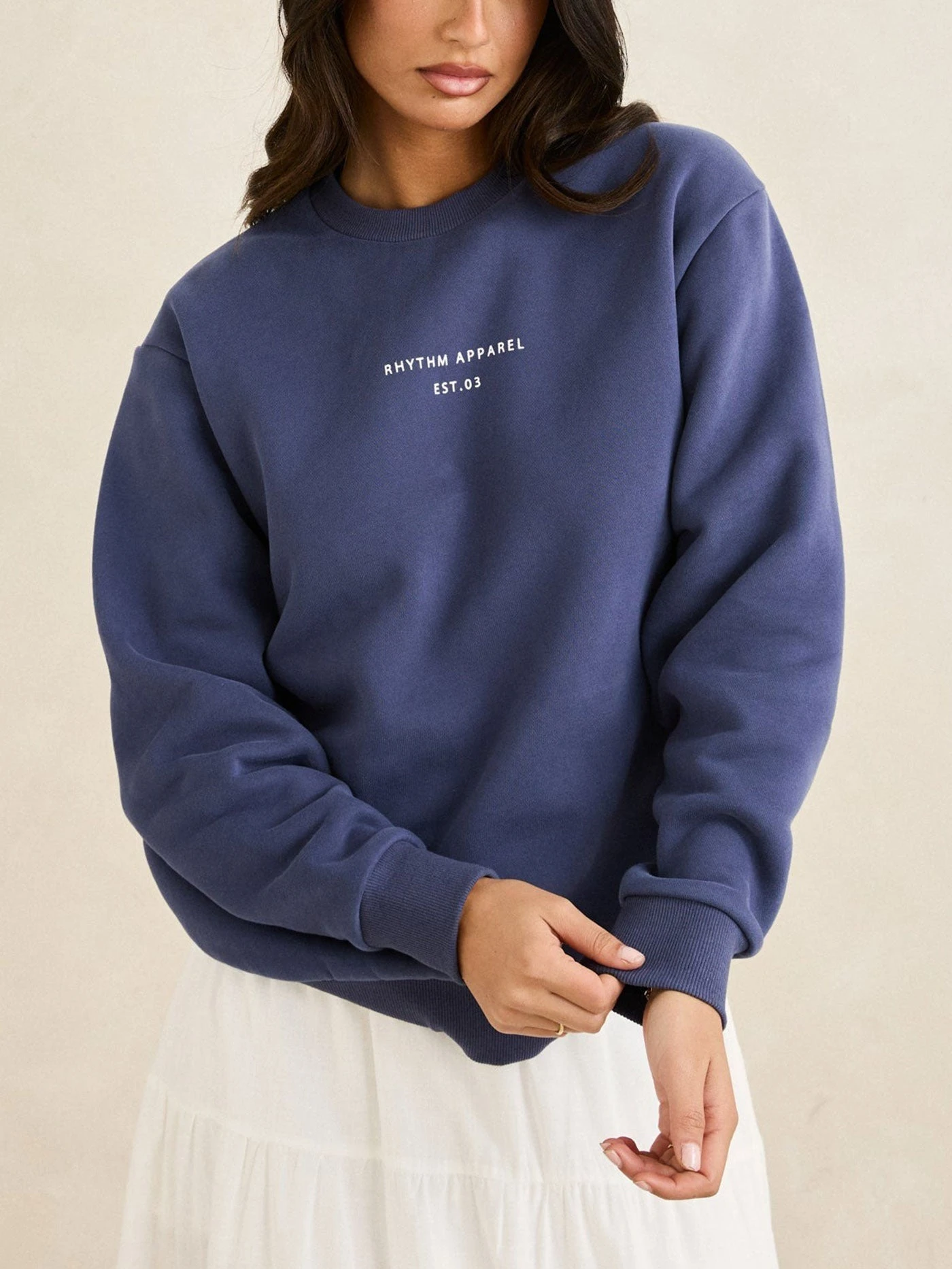 Stay cozy and stylish in the Classic Brand Fleece in Steel Blue. This oversized, relaxed fit pullover features a white printed logo on the front chest, rib bands at the neckline, cuffs, and hem, providing both comfort and a touch of sophistication. An external Classics flag label at the side seam adds a signature detail to your casual look.
