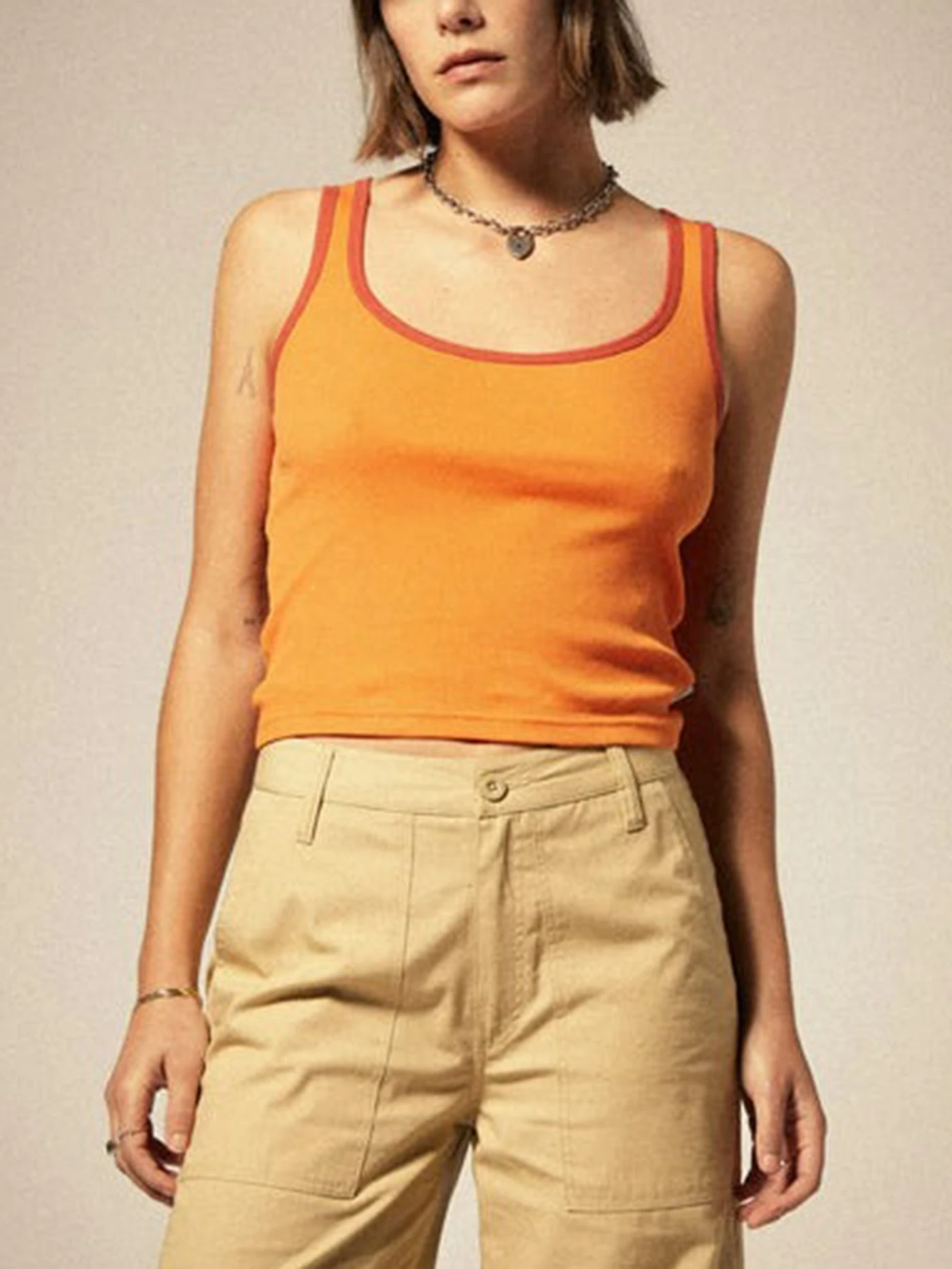 The Ringer Organic A-Tank redefines everyday basics with its eco-friendly organic cotton rib and slim, flattering fit. This tank is as versatile as it is stylish, featuring soft stretch material for breathable comfort all day long. The contrasting binding adds a pop of definition, making it perfect for layering or wearing solo during warmer weather. A discreet logo flag label adds a polished finish to this elevated essential. Whether paired with denim for a relaxed vibe or layered under a jacket for cooler evenings, this tank is tailored to fit effortlessly into your wardrobe.