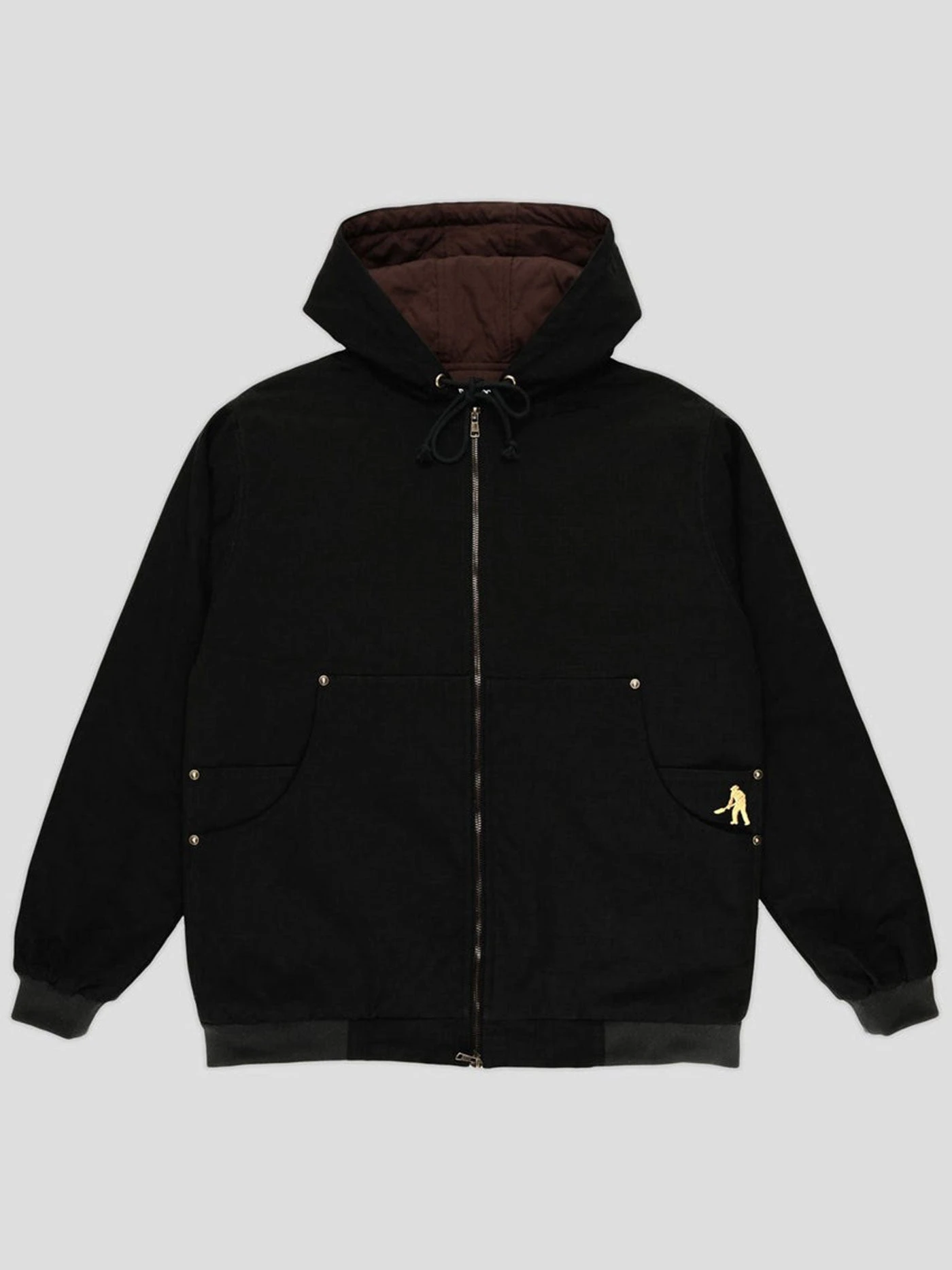 Pass~Port Diggers Club Ripstop Zip hood in black from range #45. Made from 100% cotton ripstop and lined with cotton poplin lining. The Diggers Club Hoodie also features digger embroidery on pocket and two way zip.