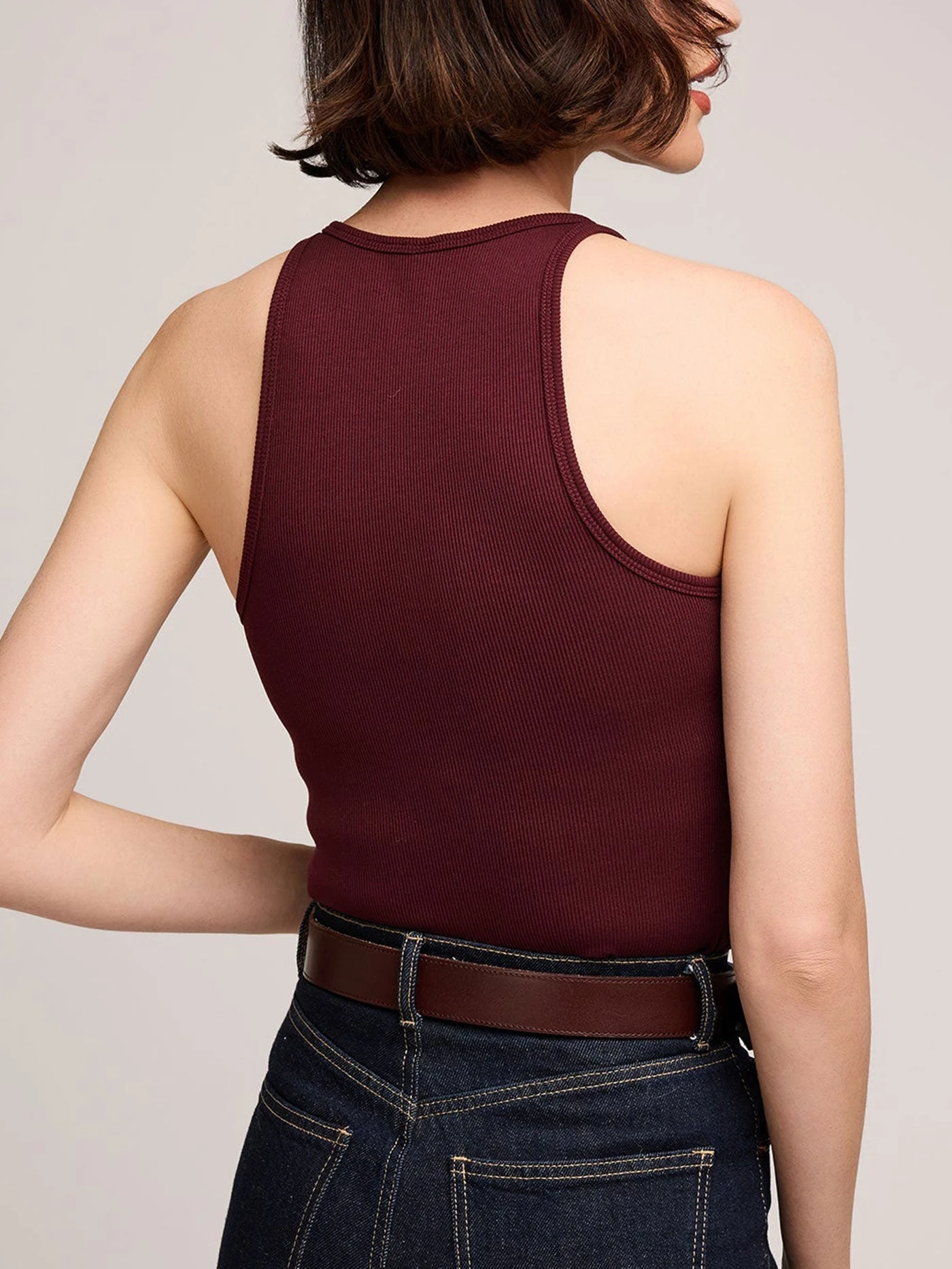 The Ronan tank is made of a stretchy ribbed fabric that hugs the body. The effortless silhouette is perfect for everyday wear.