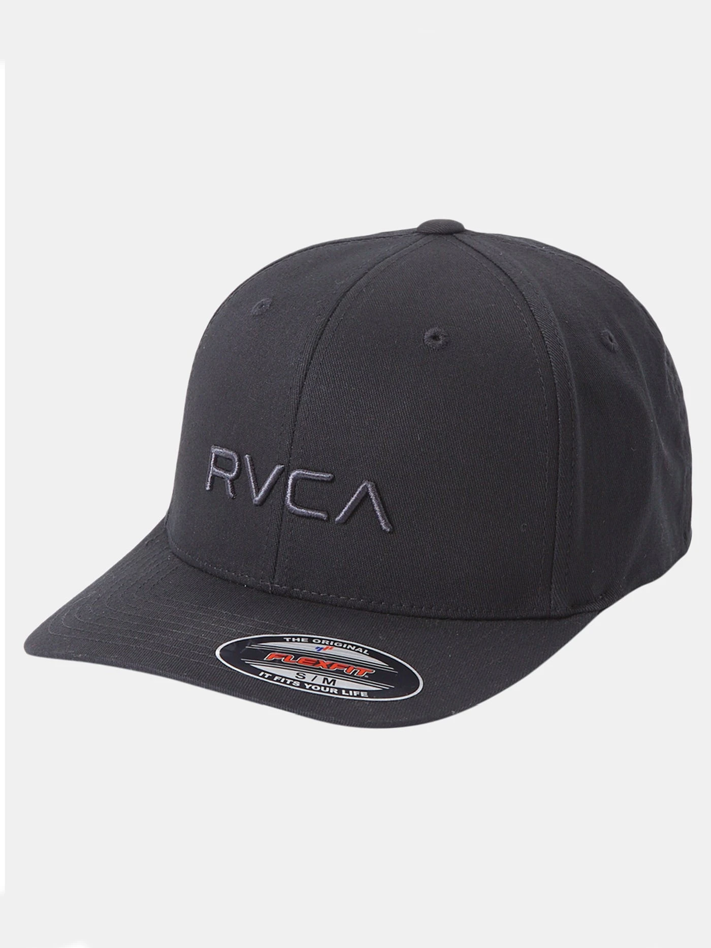 The RVCA Flexfit is a mid fit, 6-panel darted flexible fit hat with a curved visor, with RVCA raised embroidery at the front and va embroidery at the rear.