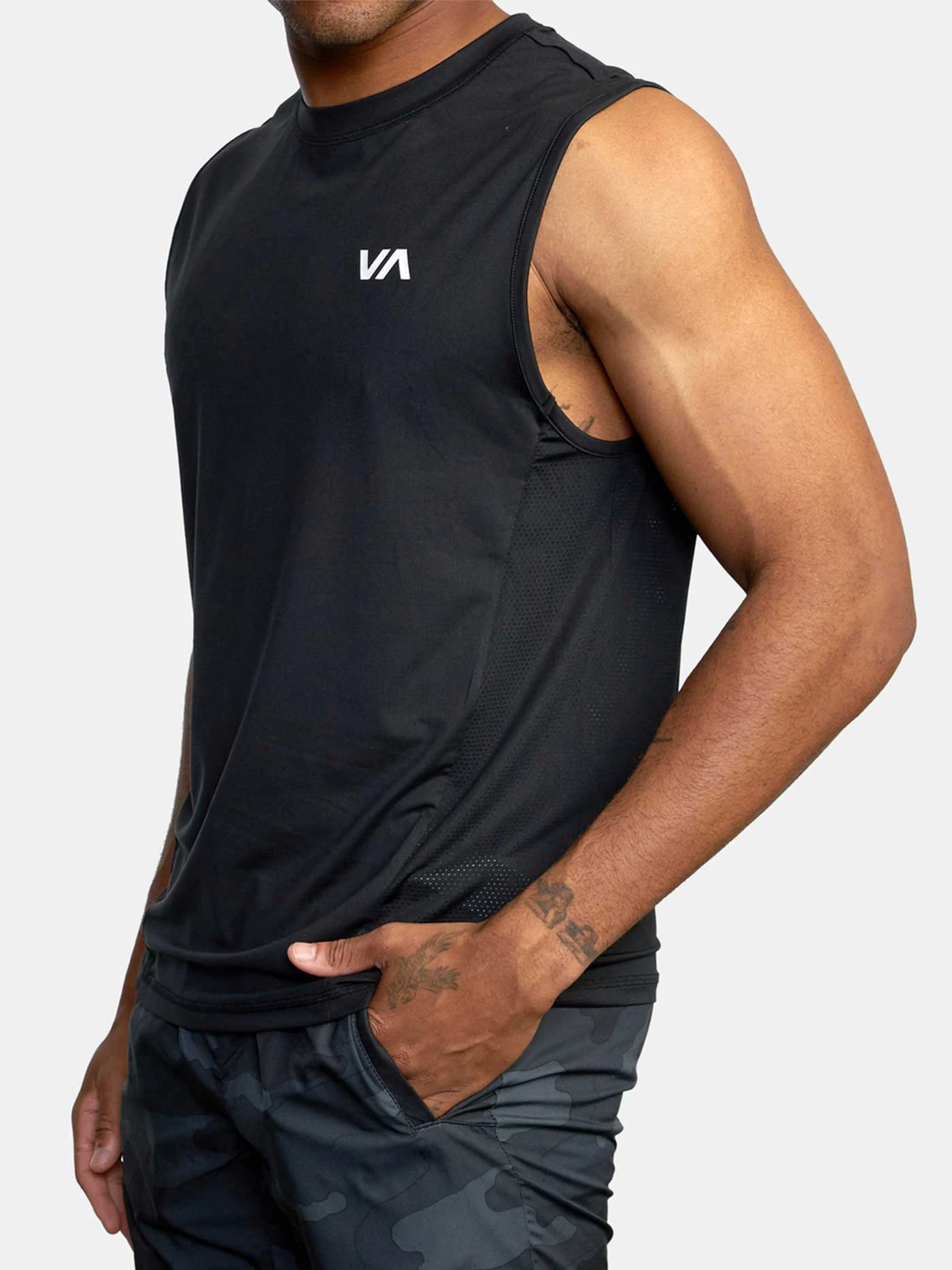 WHEN IT’S TOO HOT FOR SLEEVES, THE RVCA SPORT VENT MUSCLE TANK TOP HAS YOU COVERED. THIS POLY STRETCH TANK TOP FEATURES MESH GUSSETS AT THE SIDES AND BACK, A CREW NECKLINE AND RVCA VA PRINTS THROUGHOUT.