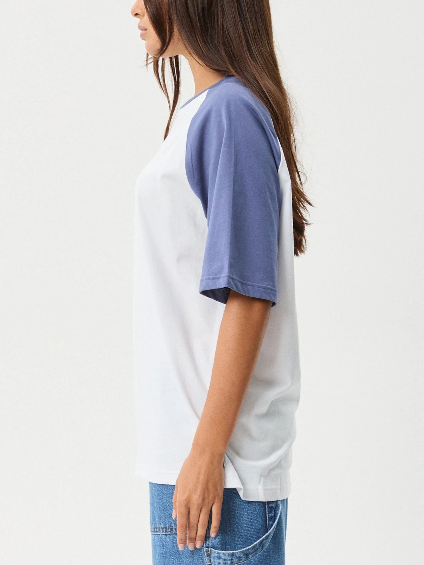 The Ryan Raglan Tee offers a midweight feel and an oversized fit. Featuring a contrast ribbed neckline, contrast sleeves, and an embroidered contrast logo for a point of difference.
