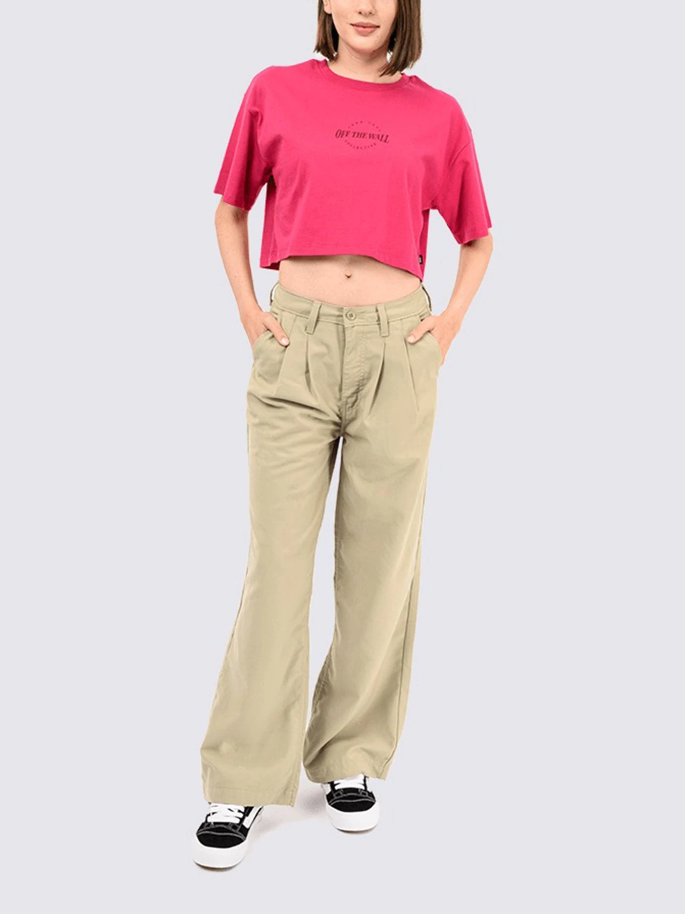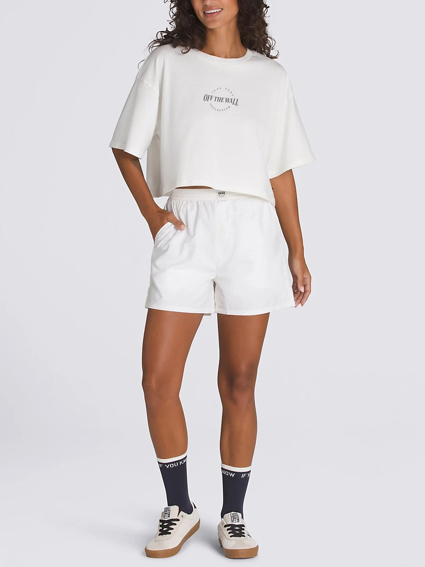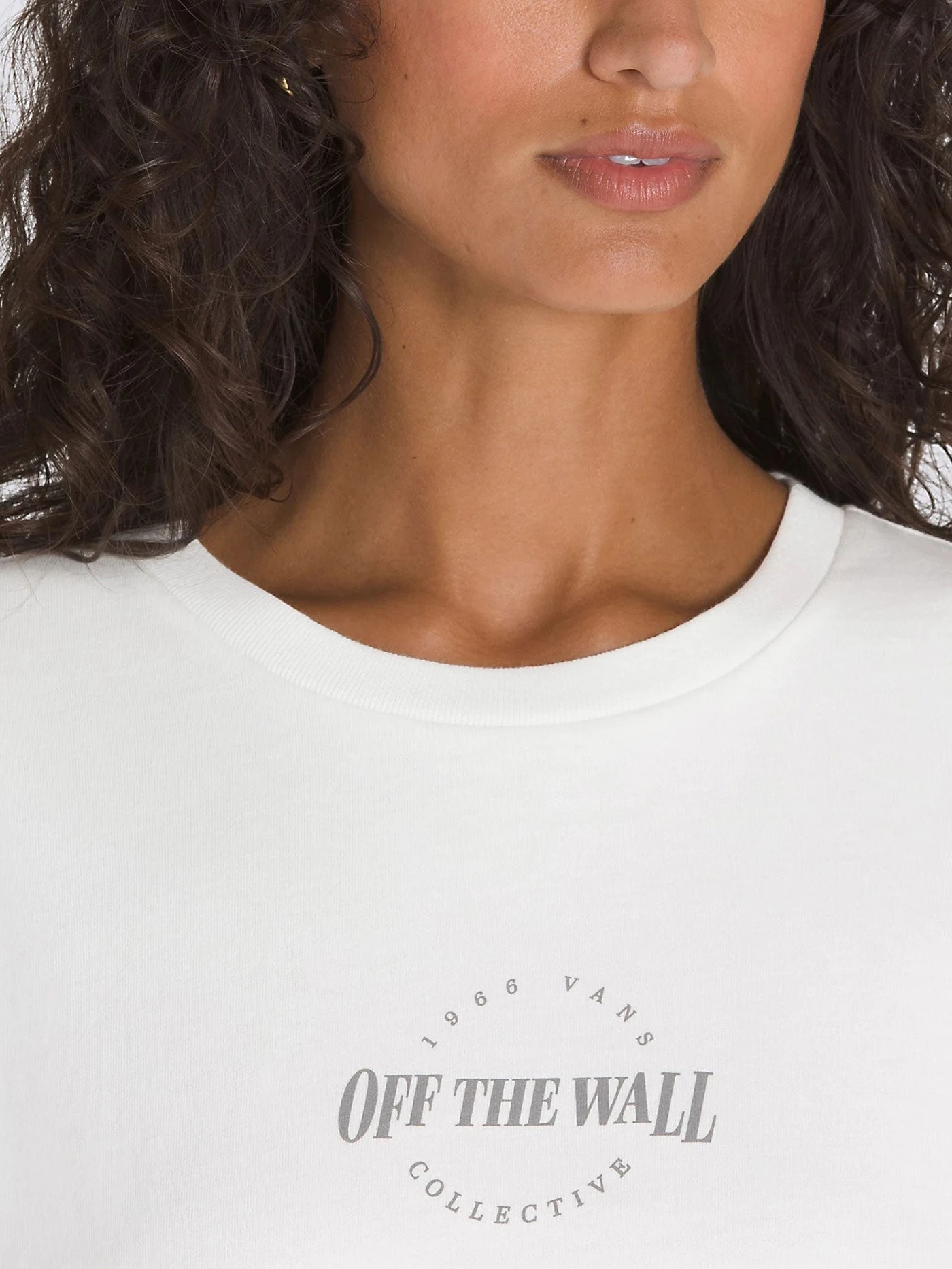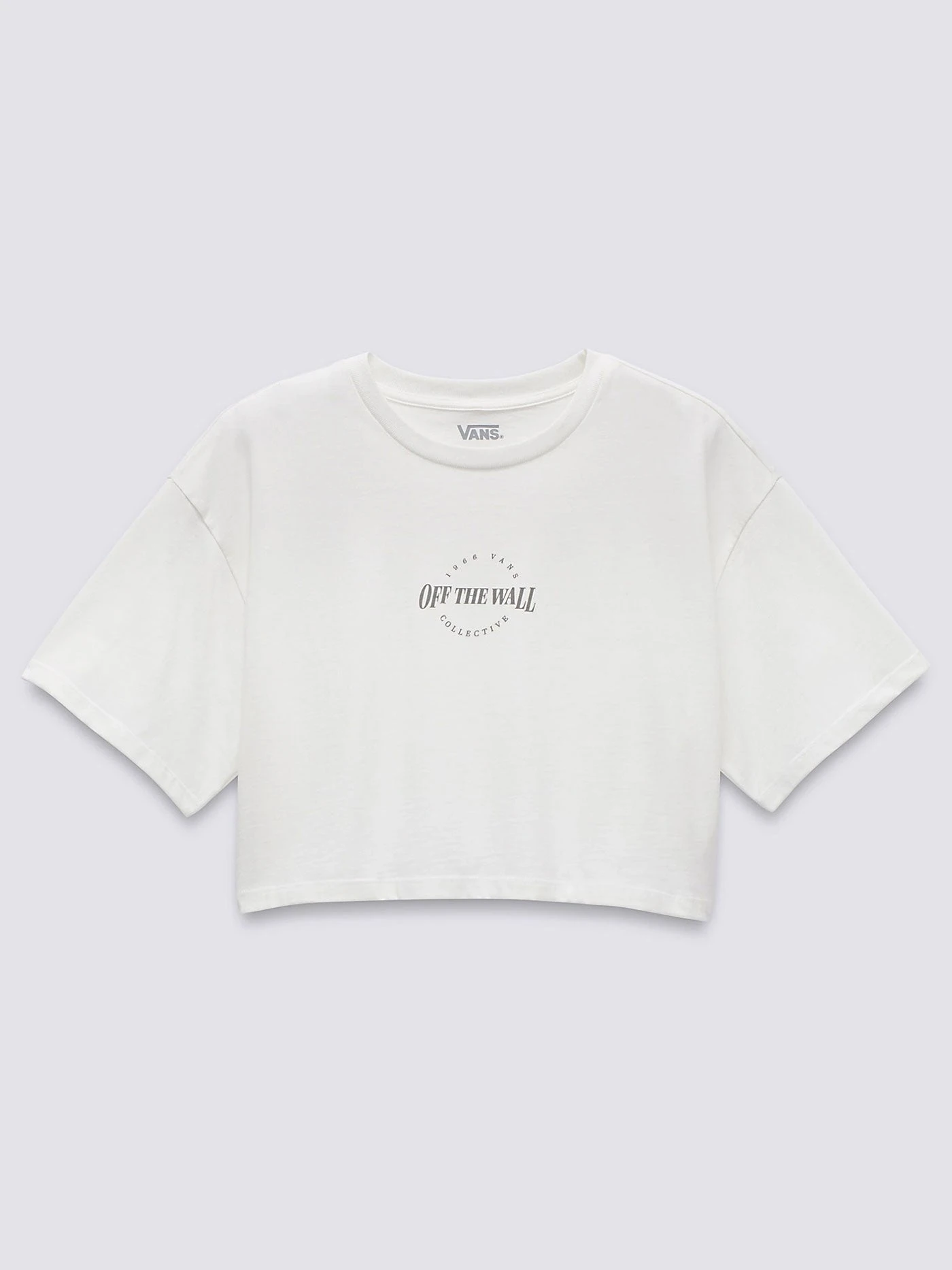 Keep it uncomplicated in the Rylen T-Shirt, a relaxed crop crew neck T-shirt with a with a simple Vans® graphic showcasing heritage details.