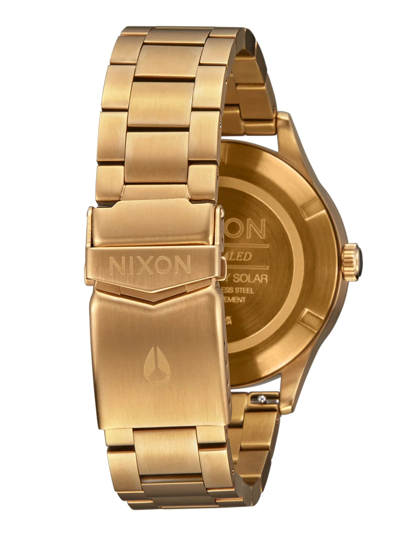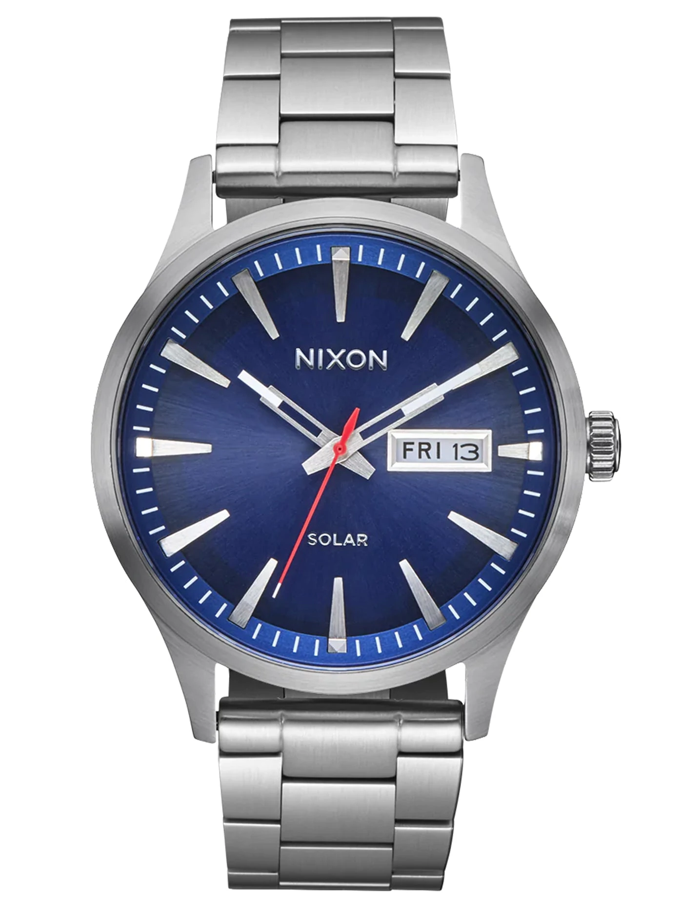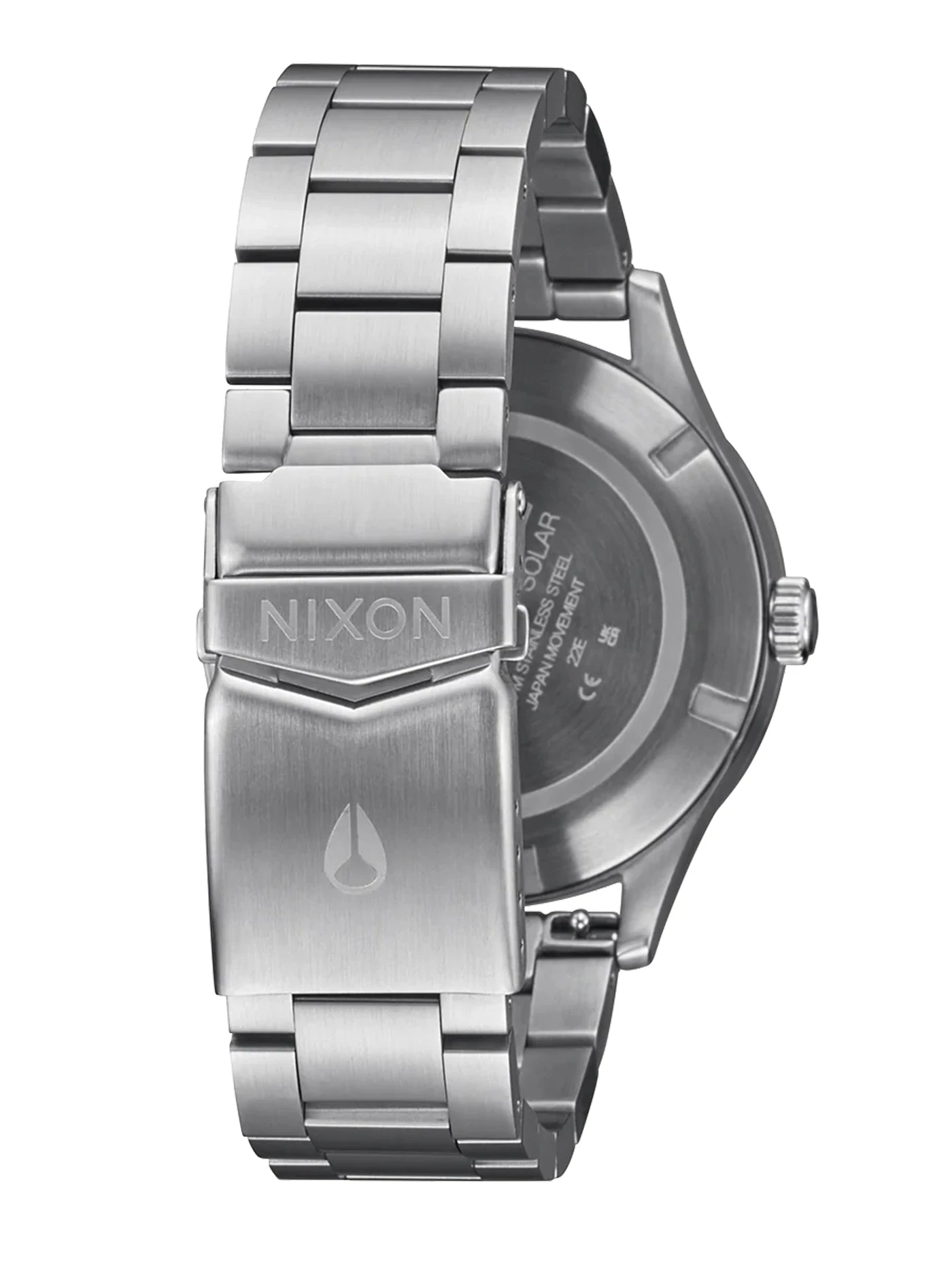 Making our best model better, Sentry has gone Solar. Our classic “thin black tie meets block party” timepiece just got an upgrade with limitless potential. Now equipped with a solar cell and Lum tip skeleton hands. Wear it for one hour under office lights to power an entire day, or expose it to six hours of direct sunlight to store six months of charge! Tap into a piece of Nixon heritage with Sentry Solar, now engineered for a brighter tomorrow.