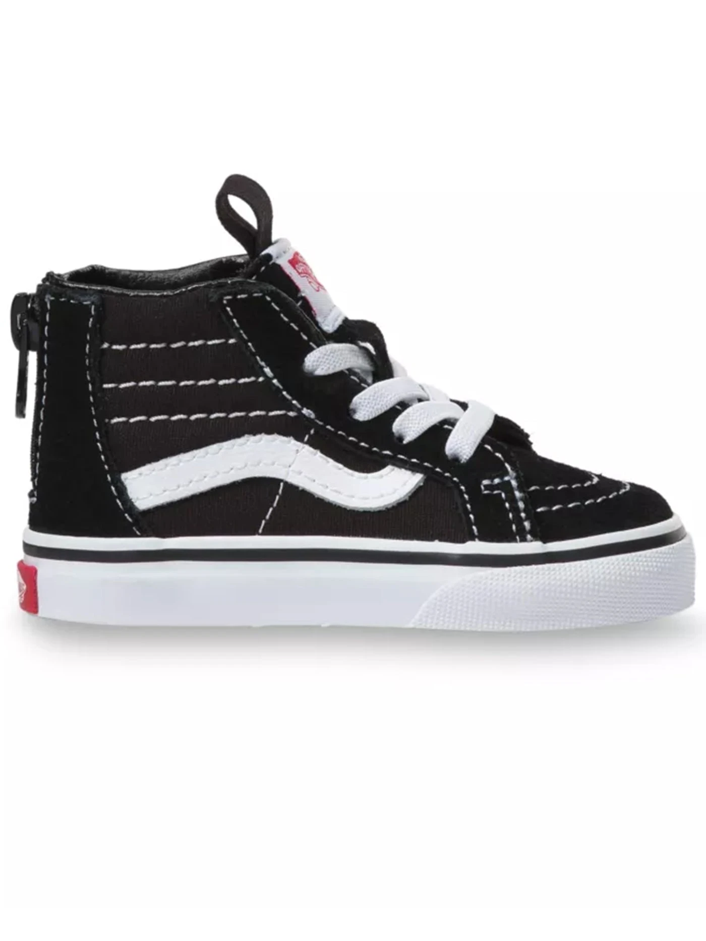 The Sk8-Hi Zip combines the Vans legendary lace-up high top with a zipper entry at the heel, sturdy canvas and suede uppers, signature waffle rubber outsoles, and padded collar and heel counters for support and flexibility.