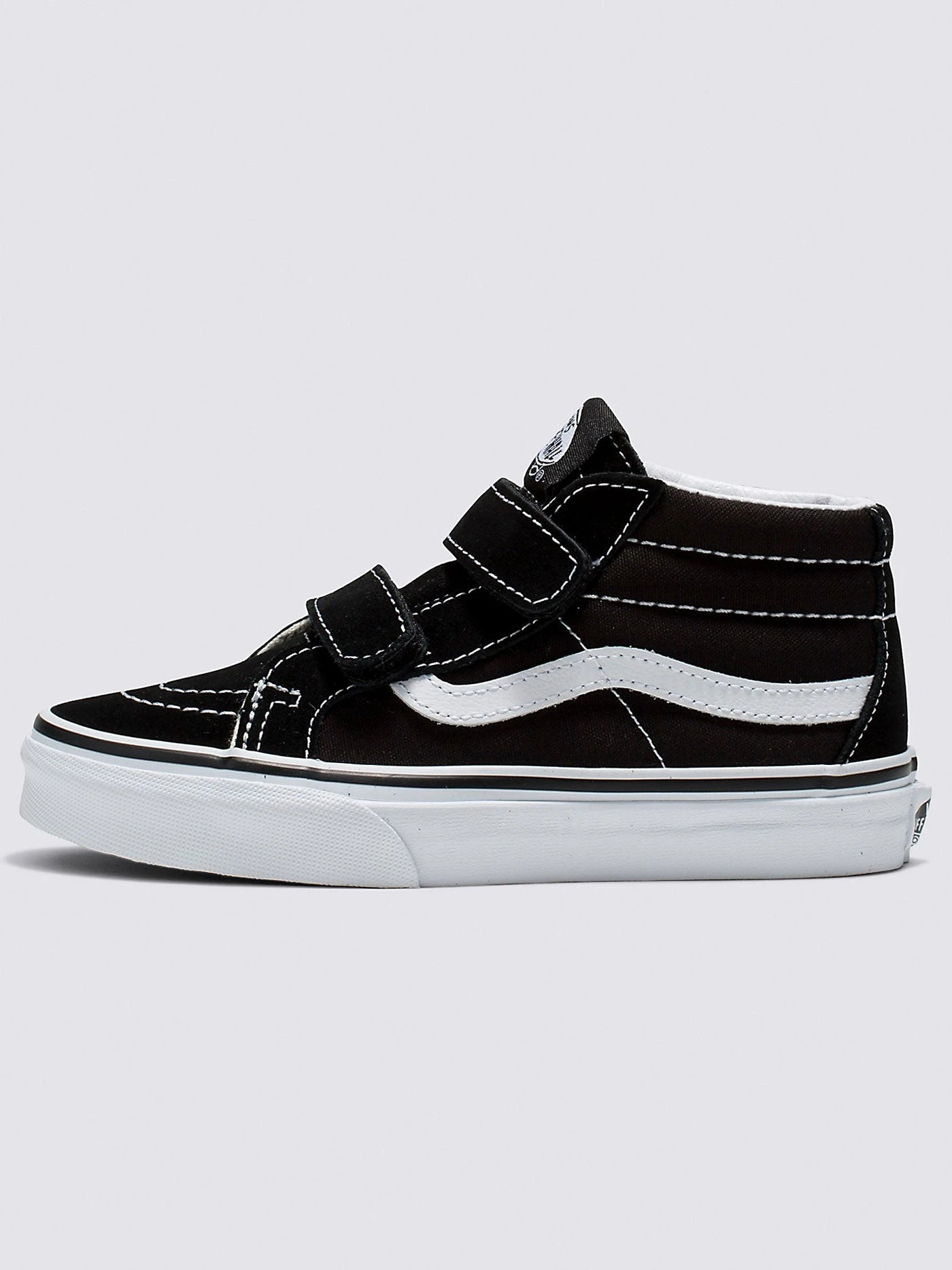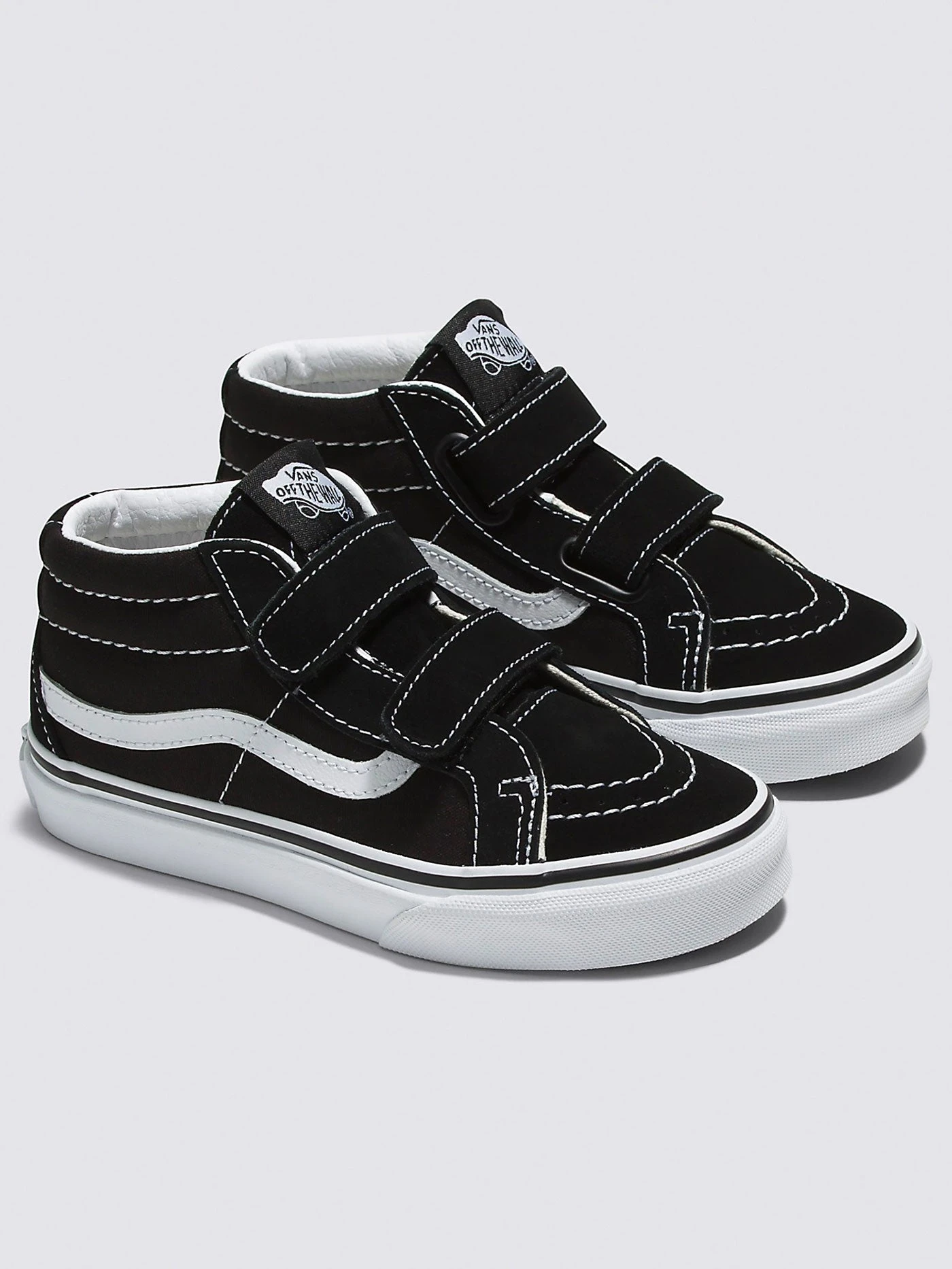 Inspired by the legendary Vans high-top, the Kids Sk8-Mid Reissue V brings the best of both worlds together with a familiar Sk8-Hi aesthetic, classic mid-top silhouette, and hook-and-loop closures that provide a secure fit without the fuss. Just strap ‘em on, and go make the day your own.