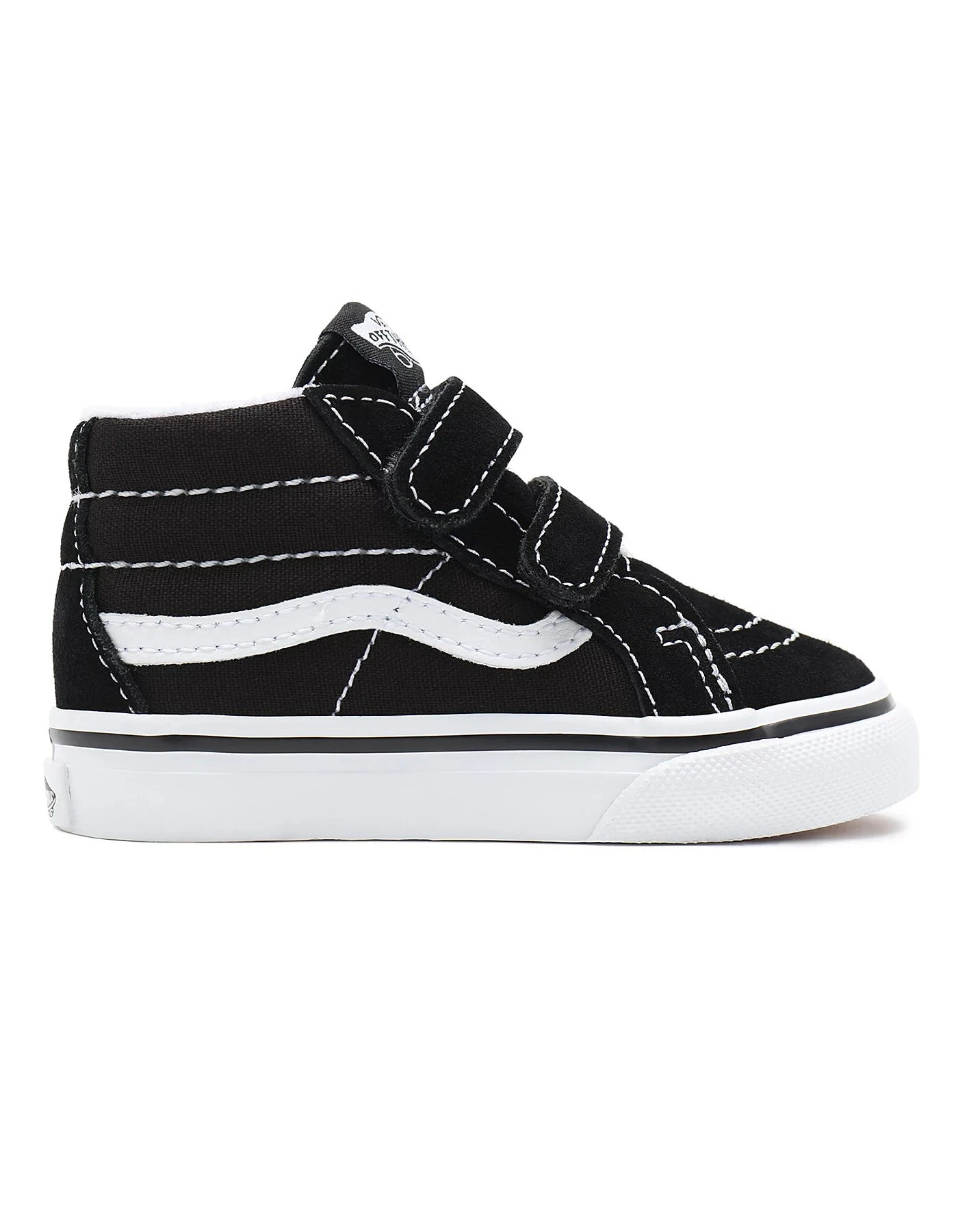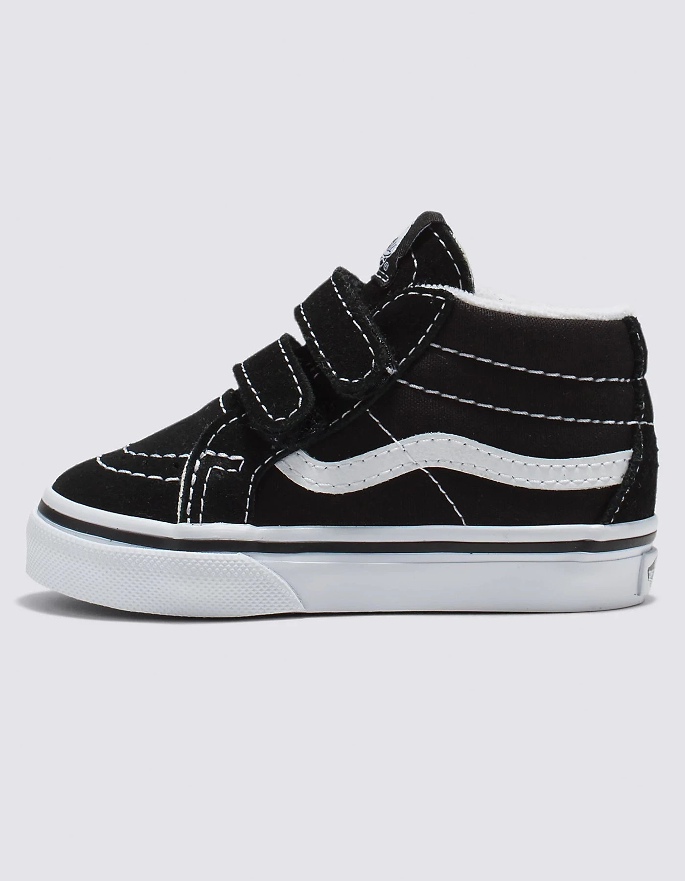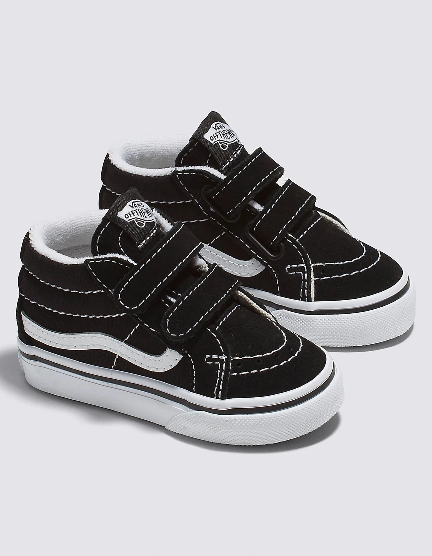 Inspired by the legendary Vans high-top, the Toddler Sk8-Mid Reissue V brings the best of both worlds together with a familiar Sk8-Hi aesthetic, classic mid-top silhouette, and hook-and-loop closures that provide a secure fit without the fuss. Just strap ‘em on, and let your little one make the day their own.