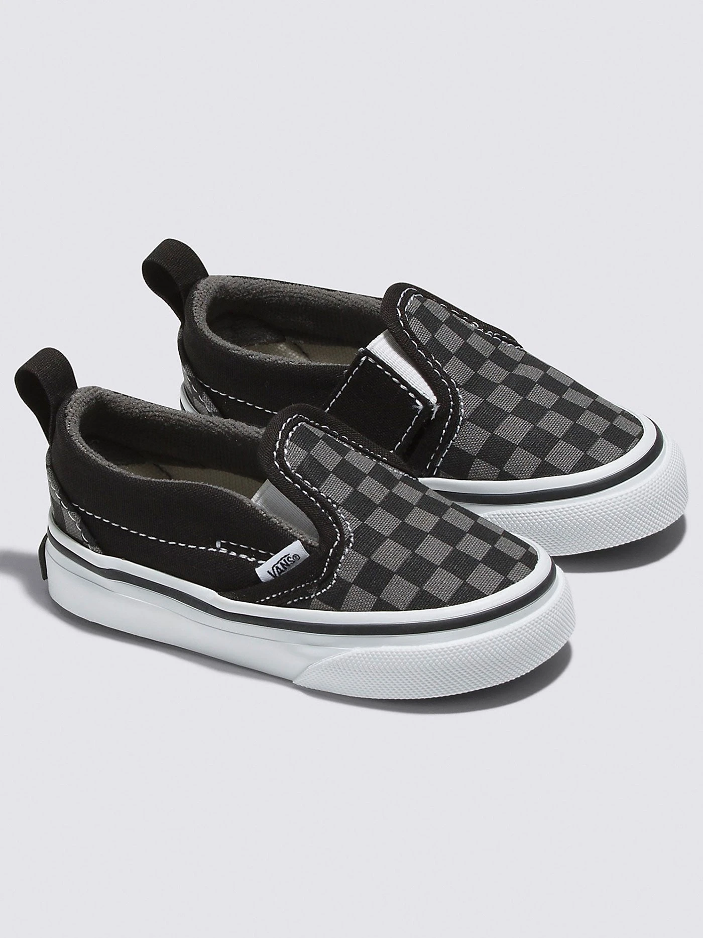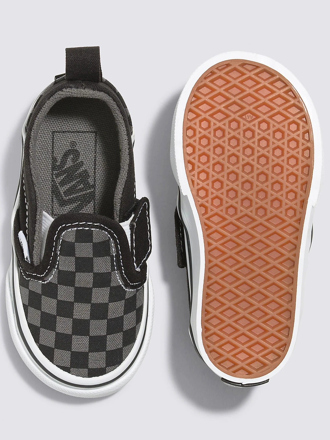 The Toddler Slip-On V Checkerboard remakes our Classic Slip-On with little ones in mind. By adding side hook-and-loop closures and heel pulls to this iconic style, an everyday essential is given a better fit for small feet, and has even easier on-and-off access, too.