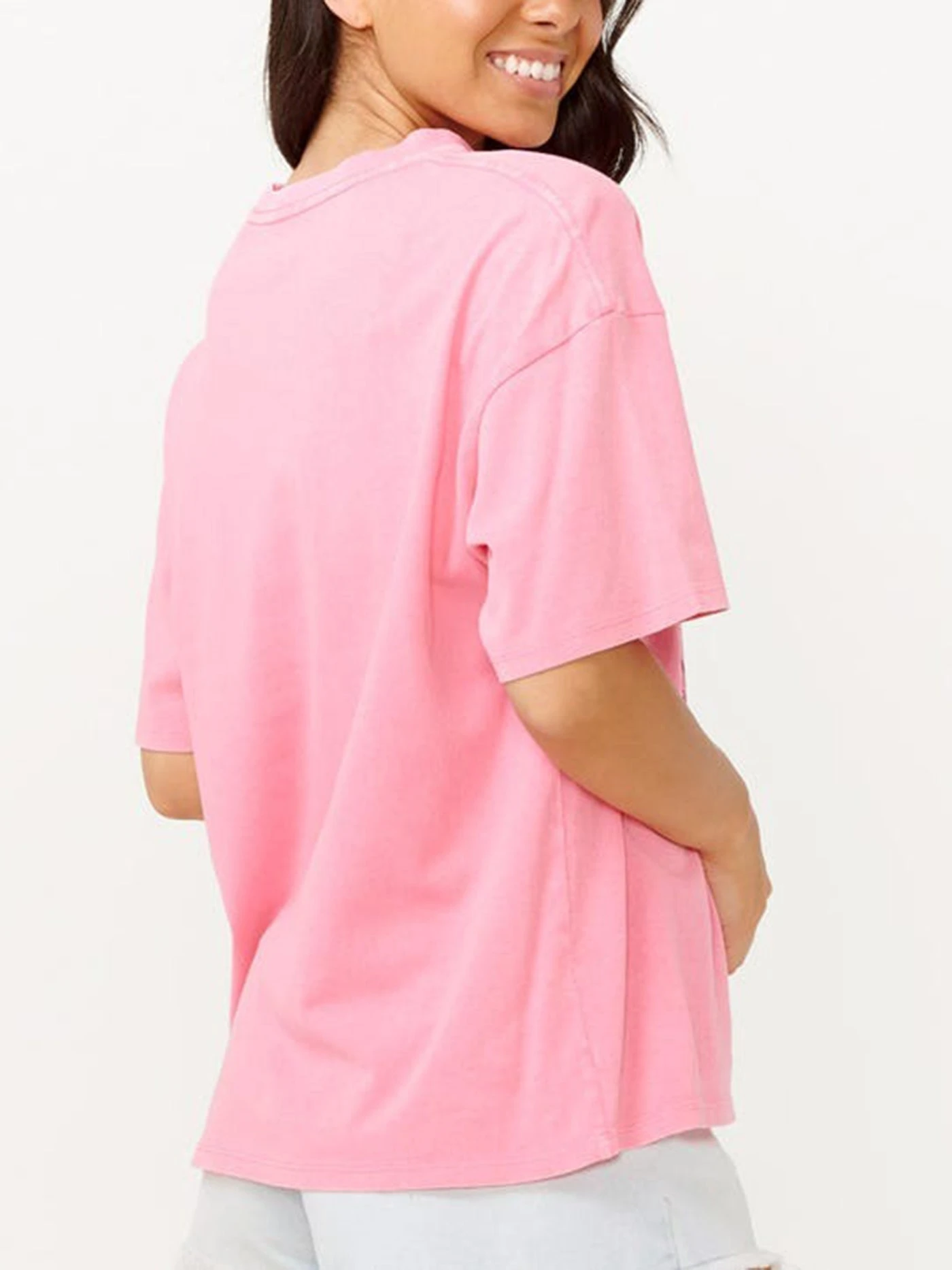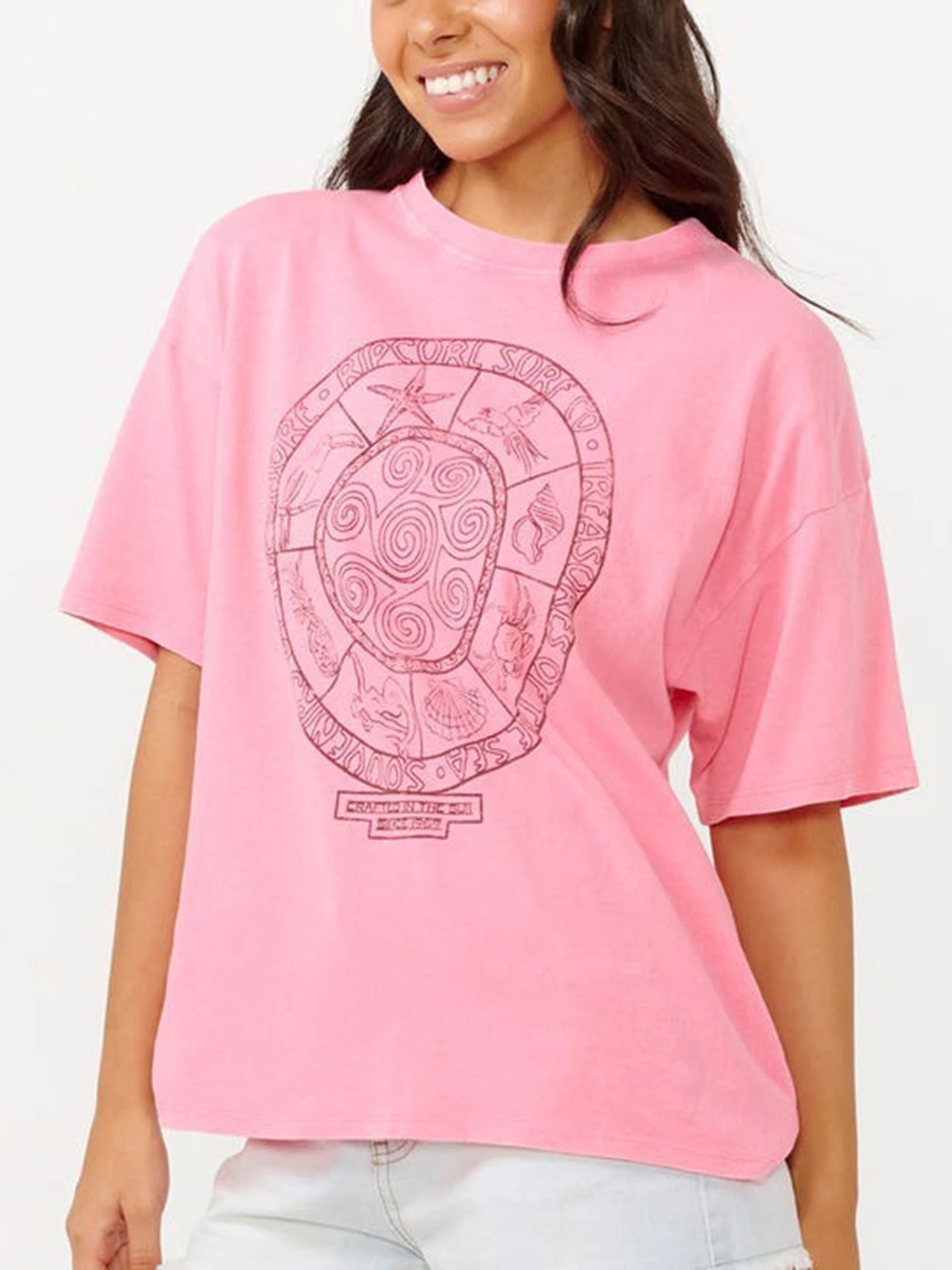 The Souvenirs Heritage Tee is made from 100% cotton jersey with garment pigment dye, heavy enzyme wash, front print, and woven flag label.