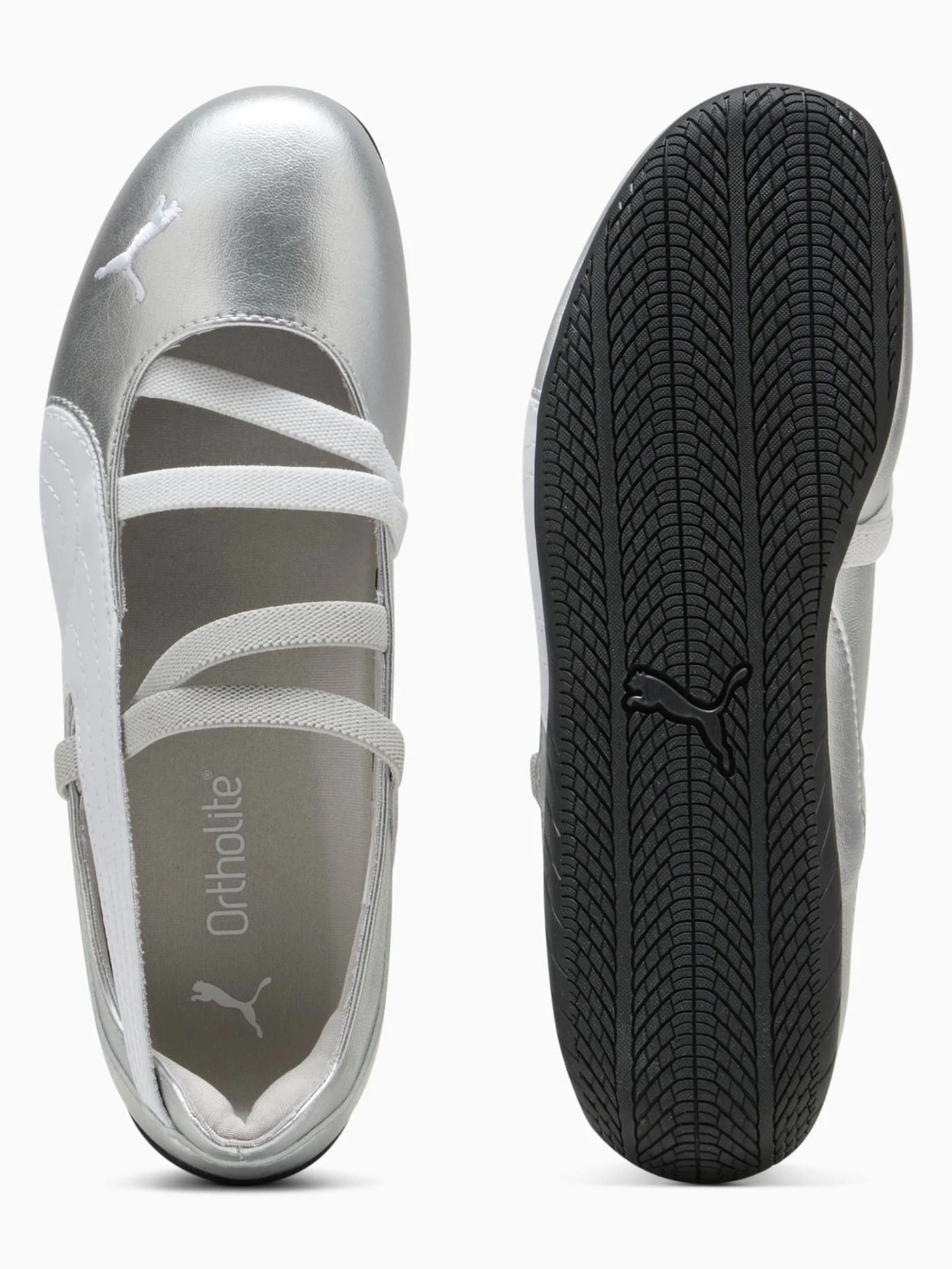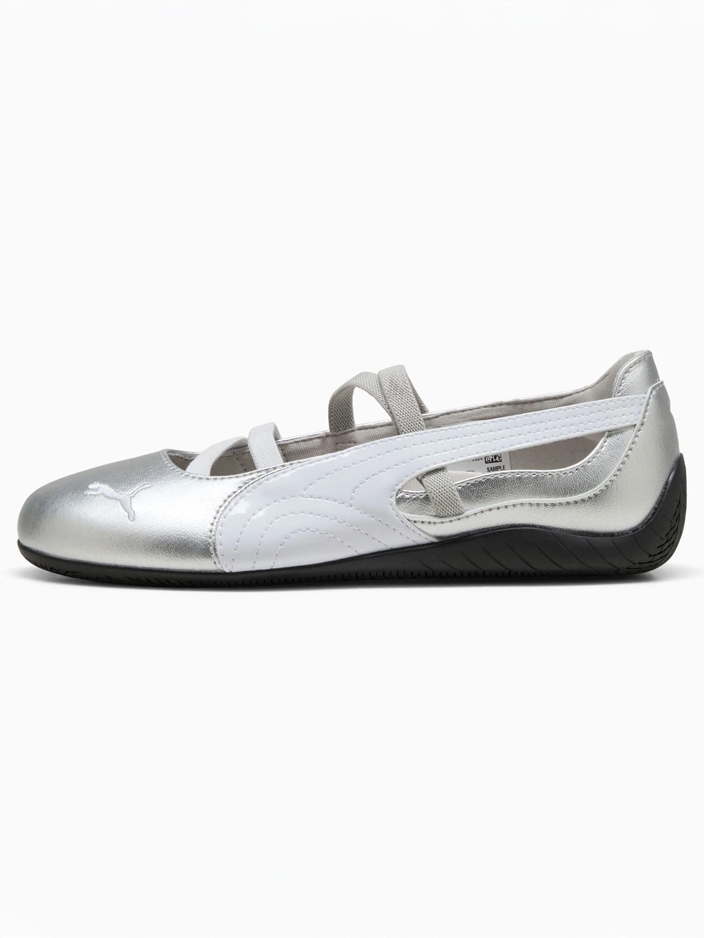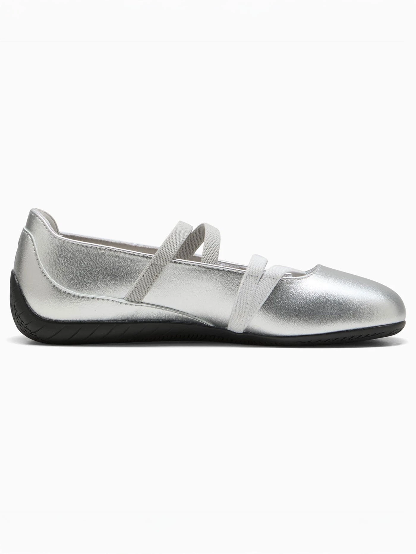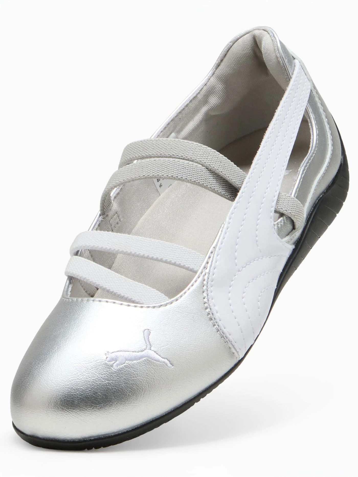 An icon of racing culture, the PUMA Speedcat has been synonymous with speed, precision, and unparalleled performance for over 25 years. It originated as a fireproof Formula 1® footwear style, but over the decades it found itself on a new circuit – transcending the tracks of Monaco for the streets of global fashion capitals. Merging ballet elegance with that original racing DNA, the Speedcat Ballet features a metallic upper, embroidered PUMA cat, and elastic bands for a snug fit. Embrace the low-profile trend with this iconic PUMA silhouette.