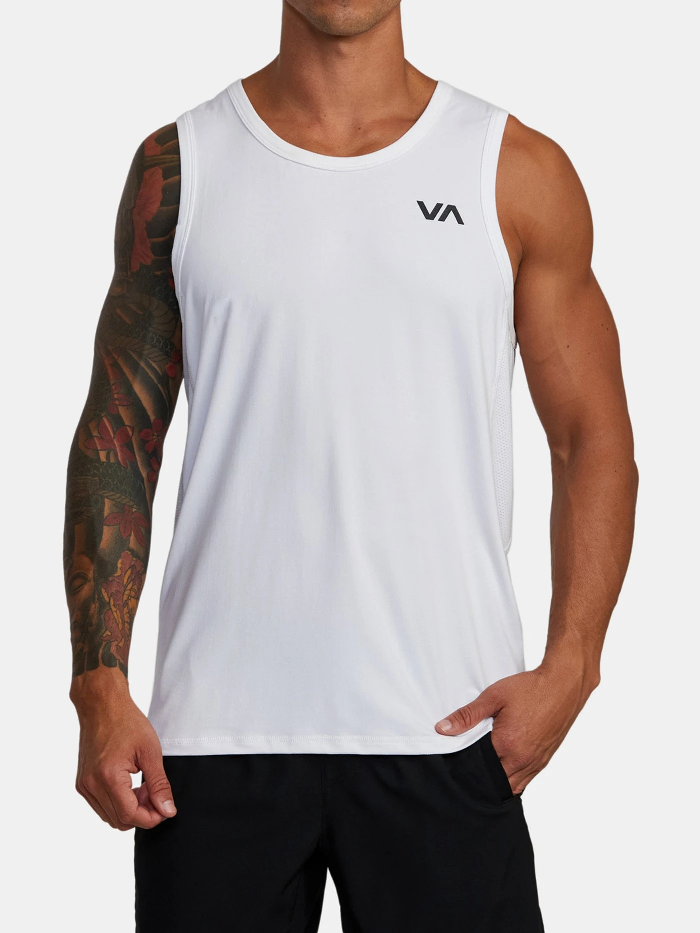 MADE TO HELP YOU KEEP YOUR COOL WHEN YOUR TRAINING SESSION HEATS UP, THE RVCA VENT TANK TOP PROVIDES SUPREME BREATHABILITY WHILE KEEPING TO A CLEAN AESTHETIC. AN ATHLETIC TANK YOU CAN WEAR CONFIDENTLY BEYOND THE GYM, THE SLEEVELESS TOP FEATURES PERFORATED UNDERARM PANELS, COMBINED WITH A 4-WAY STRETCH, MOISTURE-WICKING, ANTI-MICROBIAL FABRIC. THE SPORT TANK IS FINISHED WITH PRINTED VA AND RVCA LOGOS.