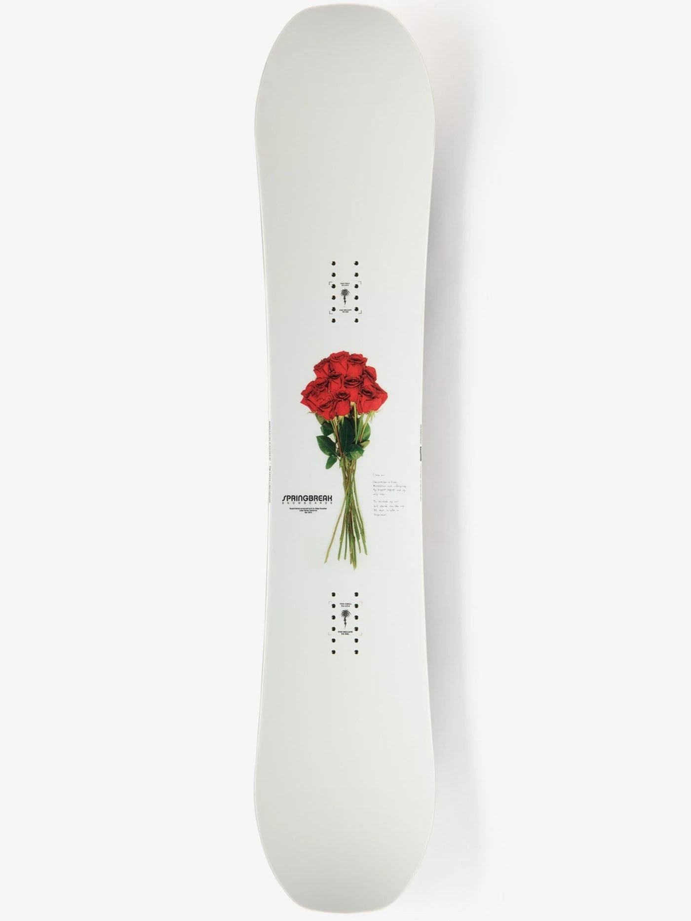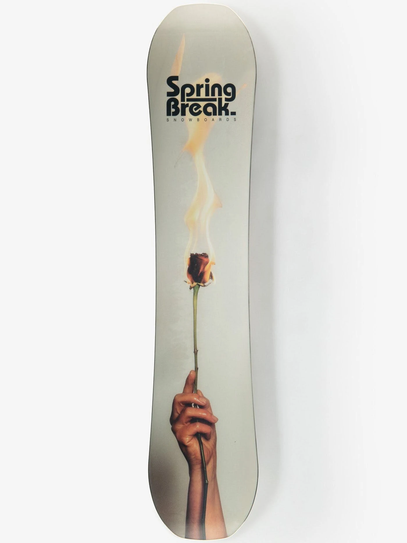 This ain’t no business-in-the-front and party-in-the-back type product. It’s all business and all party, and it’s like that all the time. With a rarely seen symmetrical approach to party boarding, we present you with the Spring Break Powder Twin. Yep, it looks like a twin-tip park board but guess what? It retains many of the geometric theories that have made Spring Break Snowboards legendary in powder—and on the corduroy.