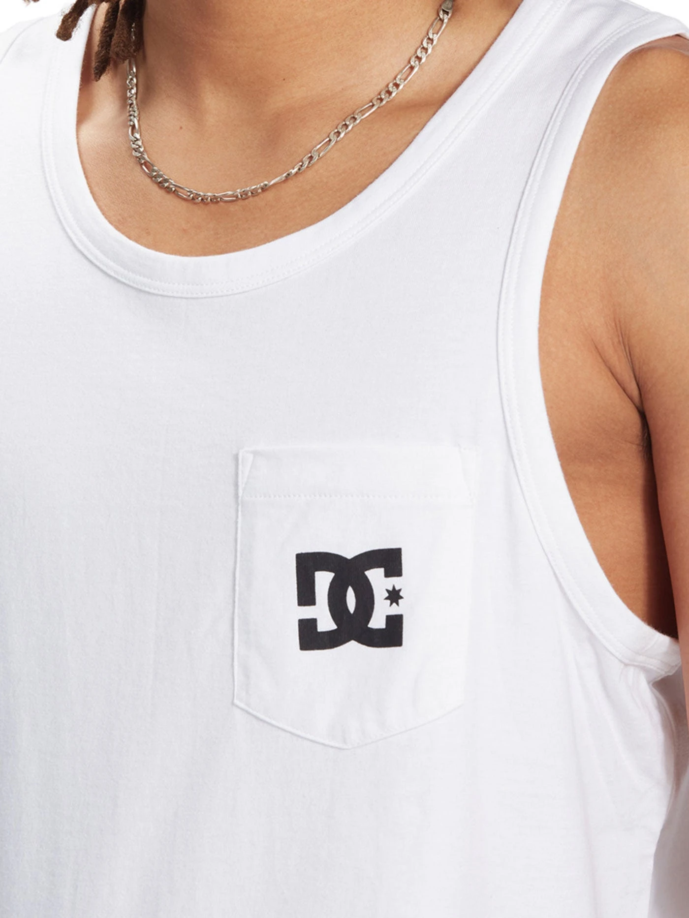 Warm days call for this classic DC tank top. Crafted from soft knit cotton jersey fabric, the sleeveless tank features a left chest pocket with a Screenprint.