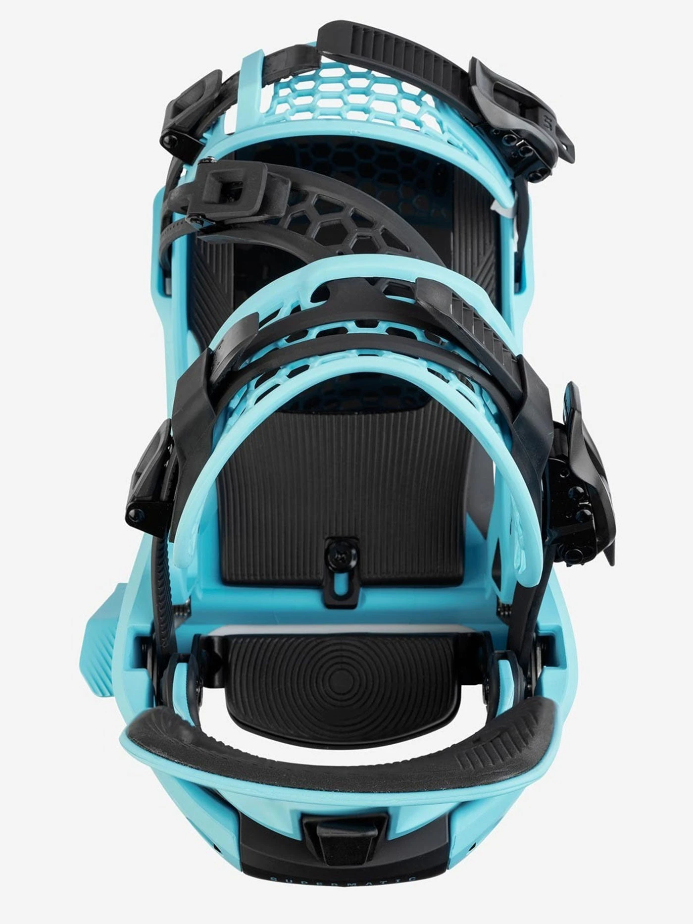 The Supermatic works using a triggered hiback we call Drop-In Tech. Just push your foot in through the back and step down on the heel pedal to automatically engage the binding. That’s it – you’re ready to shred. A simple release lever makes exiting just as rapid. The straps are the same comfy AuxTech design found on our traditional high-end bindings. Adjust them once, then lock them in place using the aluminium Locking Slap Ratchets to enjoy a perfect fit every time. The beauty of this system is that it works with any boot from any manufacturer, and there’s no fiddly mechanism to get clogged. If the slope or snow conditions demand it, you can even strap in just like a regular binding.