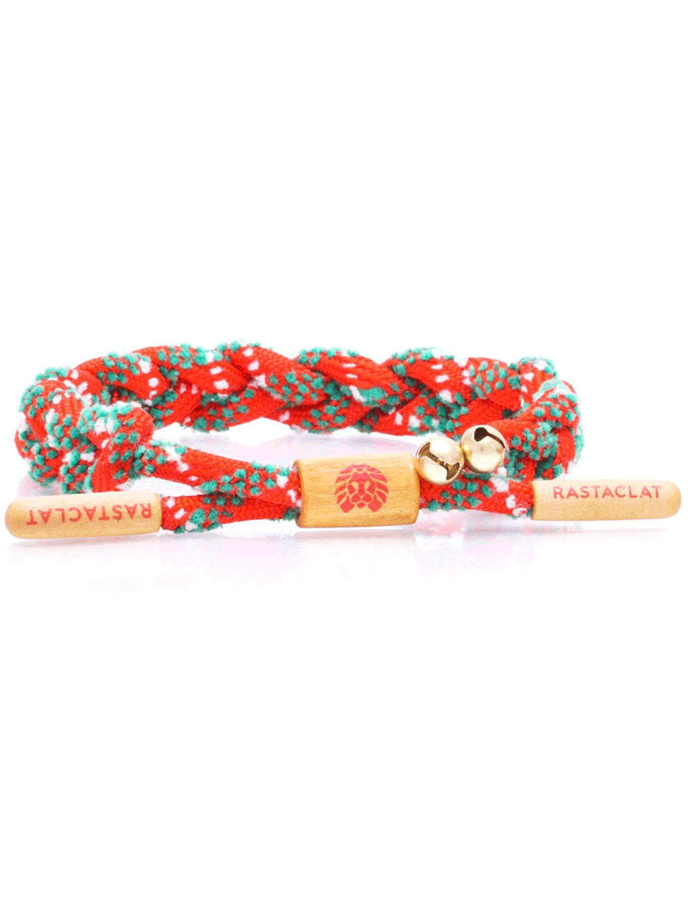 RING IN THIS YEAR’S HOLIDAY FESTIVITIES WITH OUR RED AND GREEN BRAIDED BRACELET FEATURING WOOD HARDWARE, COMPLEMENTED WITH CONTRAST EMBLEMS AND A JINGLE BELL.