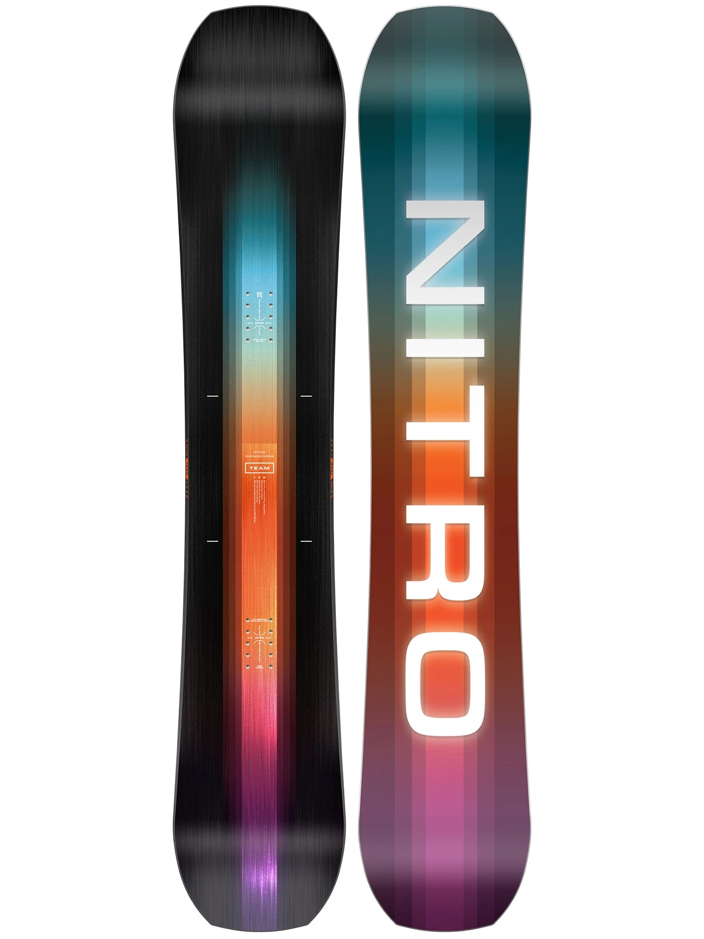 The poppy and versatile Team snowboard has been a team favorite for over two decades, offering a higher nose and tail to provide more float on the good days and a familiar versatile flex for more fun on the regular days. An endless evolution of innovation, testing, and feedback from Olympians to local heroes, the Nitro Team is one of the most trusted and versatile all-terrain snowboards on the market – ridden by Pros to Weekend Warriors worldwide daily.
