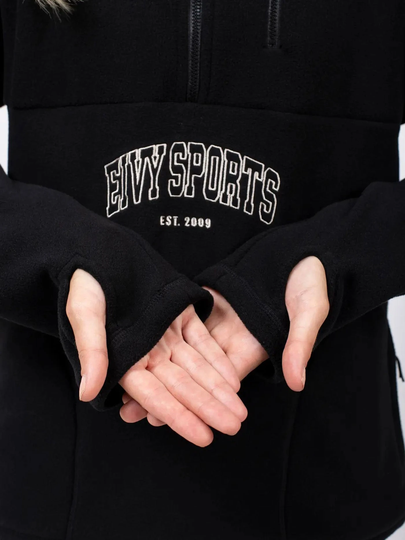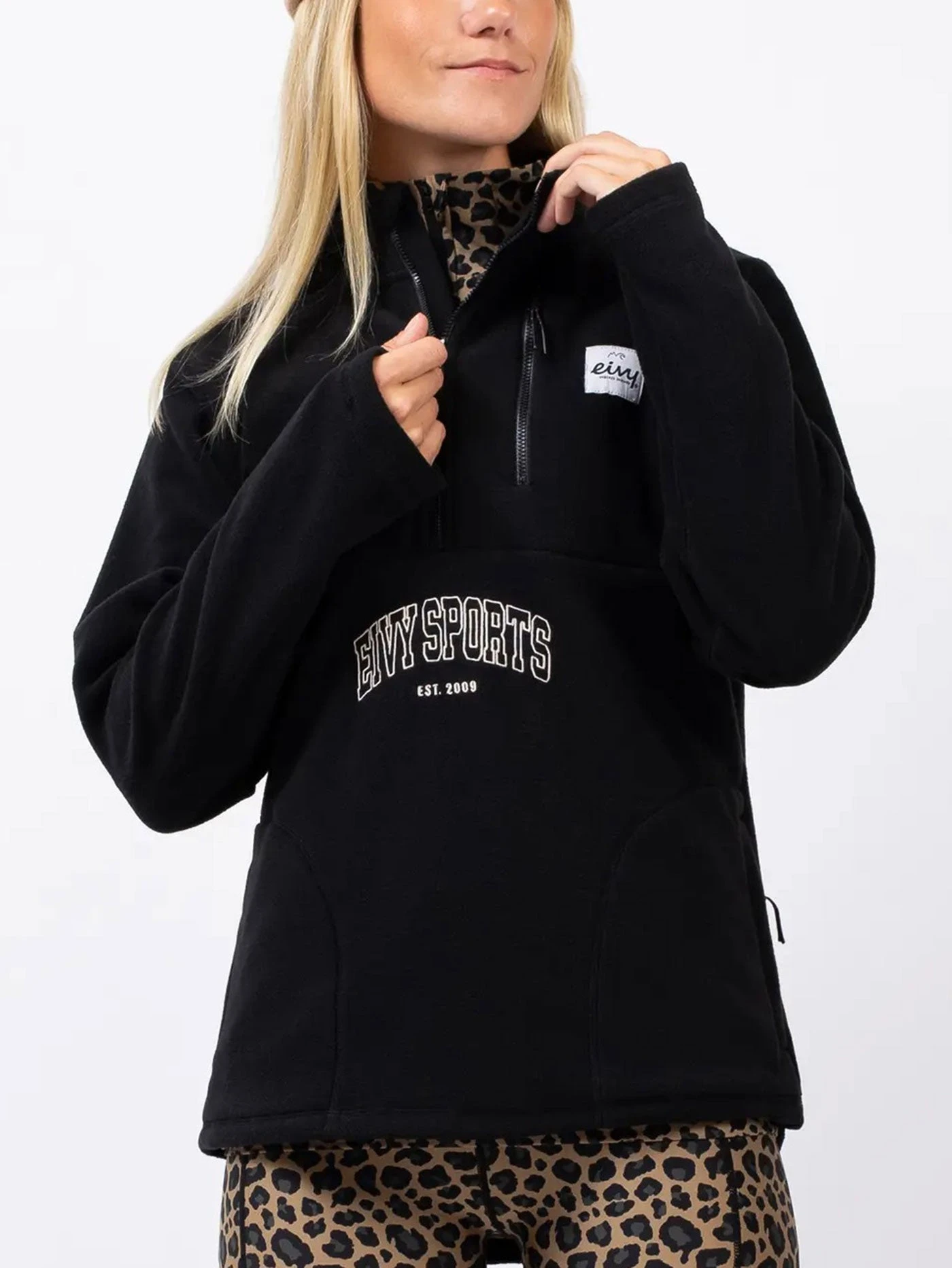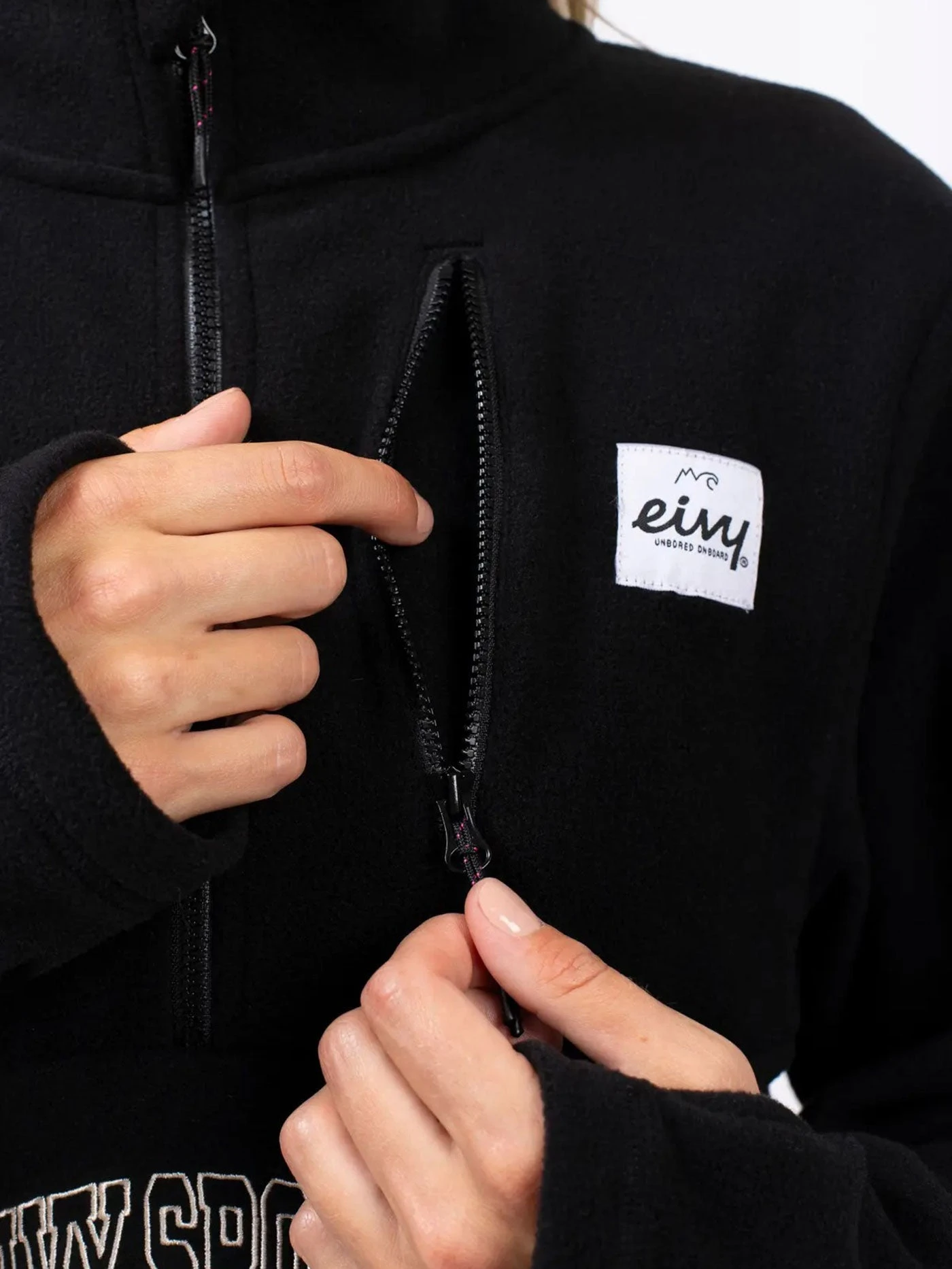 Soft and warm fleece sweater in black with a woven patch and thumbholes, featuring Eivy’s signature extended back for added coverage and comfort. This cozy piece is perfect for layering under a jacket on the slopes or wearing on its own during chilly days. The zipped pockets provide secure storage for your essentials, making it a practical choice for both outdoor adventures and casual. Whether you’re hitting the mountains or just running errands, this fleece sweater combines style and functionality to keep you warm and comfortable all day long.