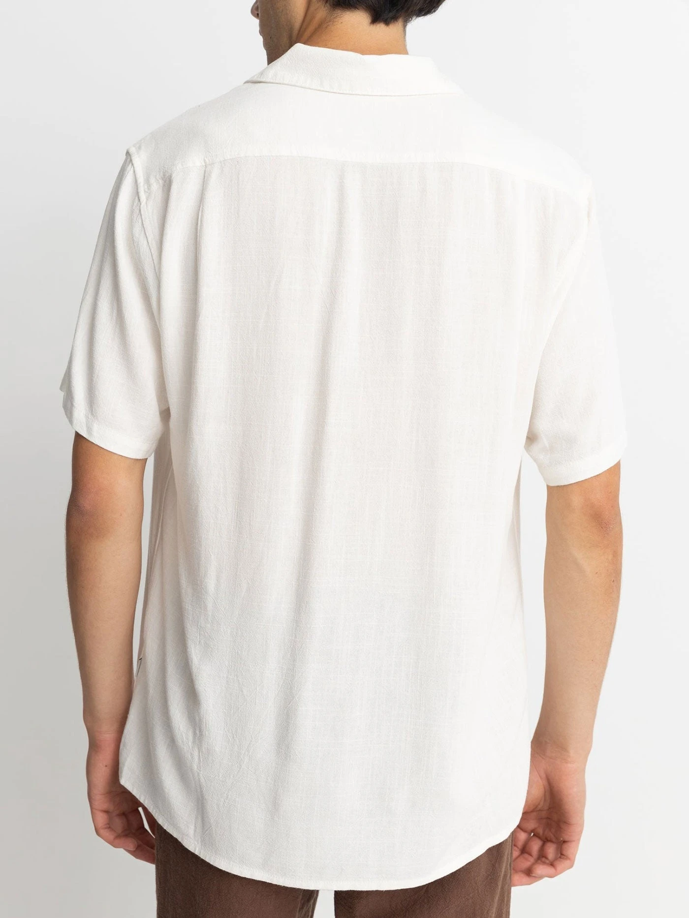 Classic style meets modern comfort in the Textured Linen SS Shirt in Natural. Made from a recycled polyester blend, it offers a soft hand feel, standard fit, plastic summary closure, one-piece collar, and straight hem.