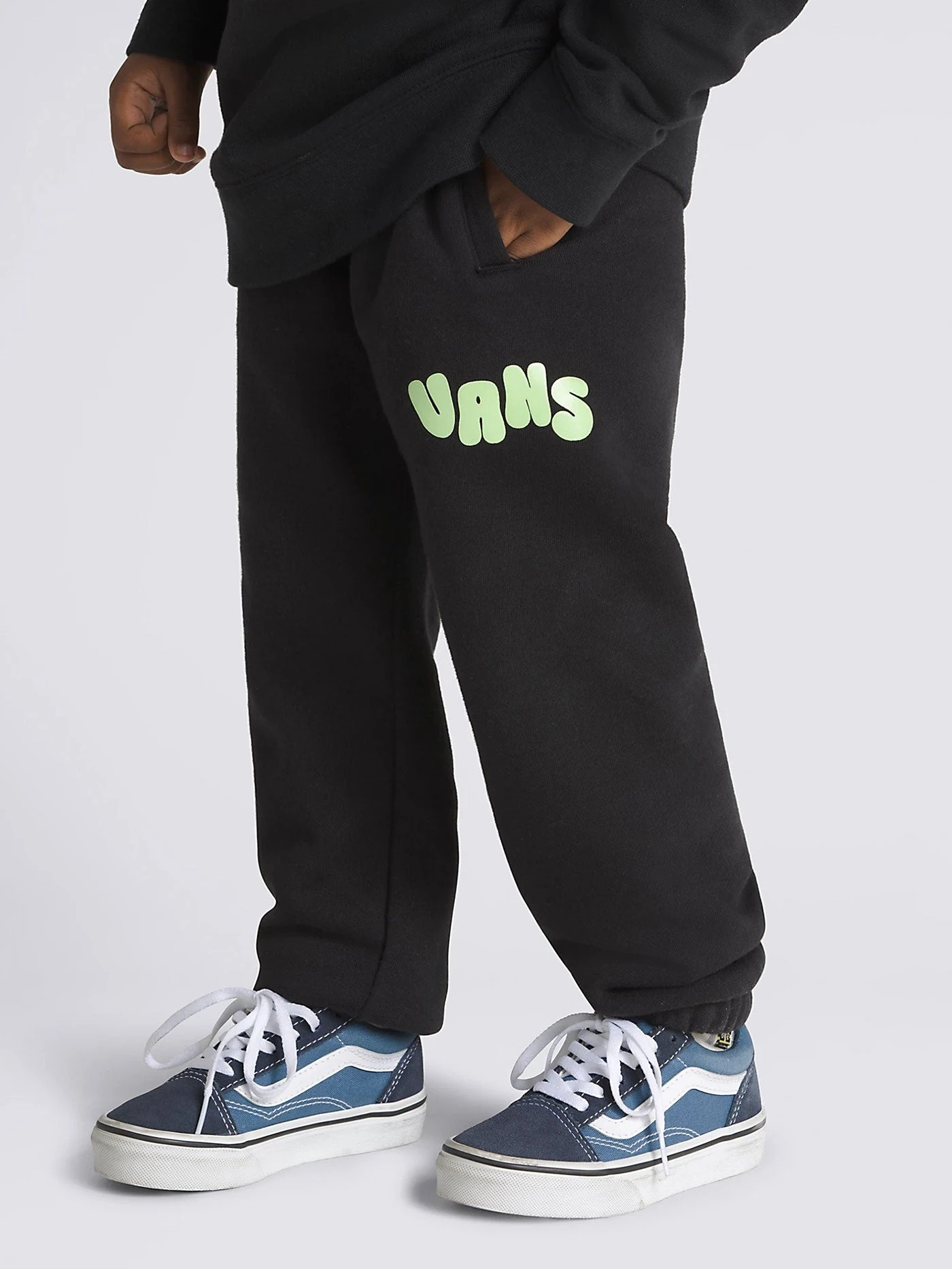 Be the leader in the Little Kids The Pack Fleece Pants, a cozy pair of go-anywhere pants with side hand pockets and a glow-in-the-dark screenprinted Vans® logo on the thigh.