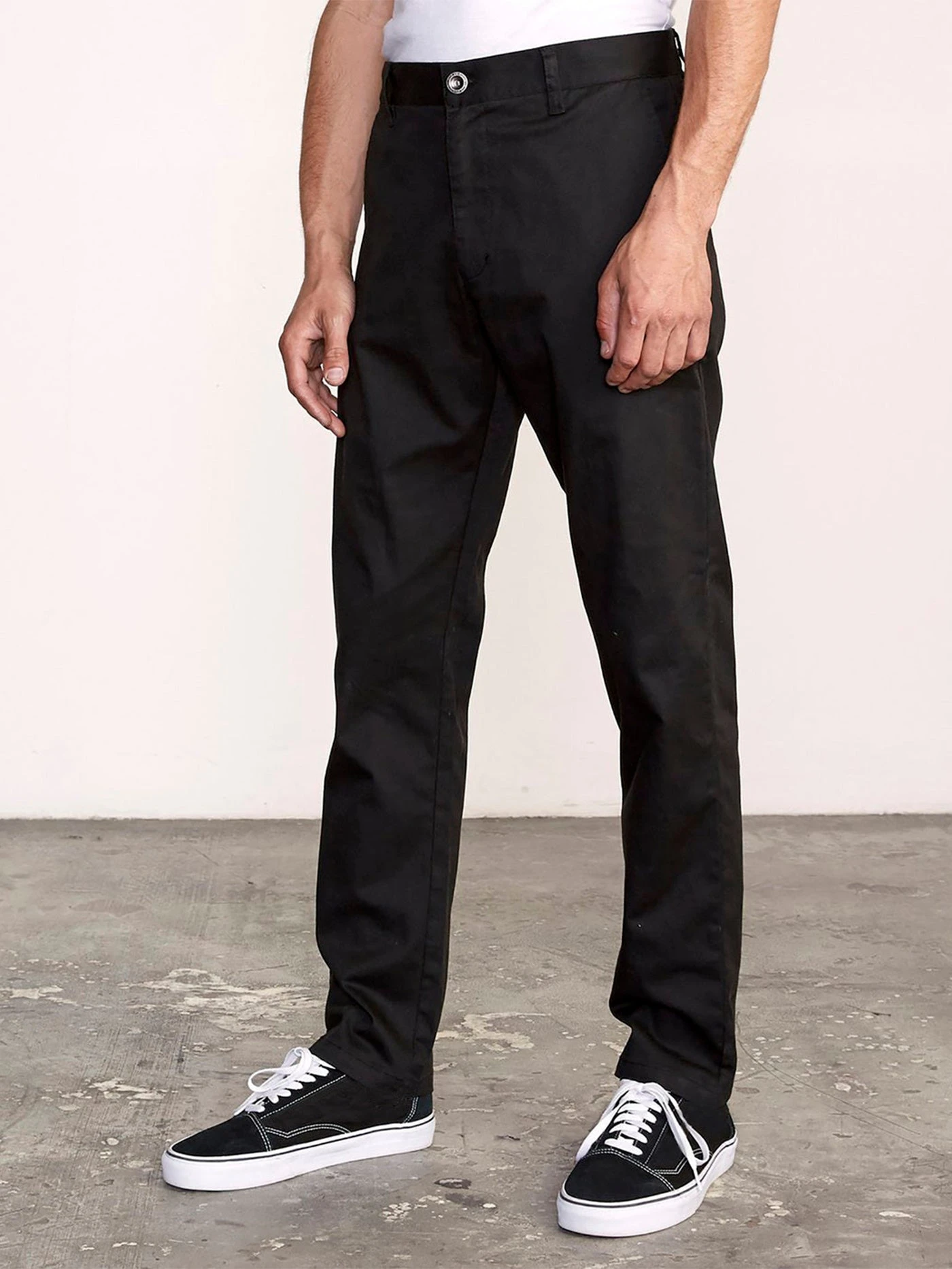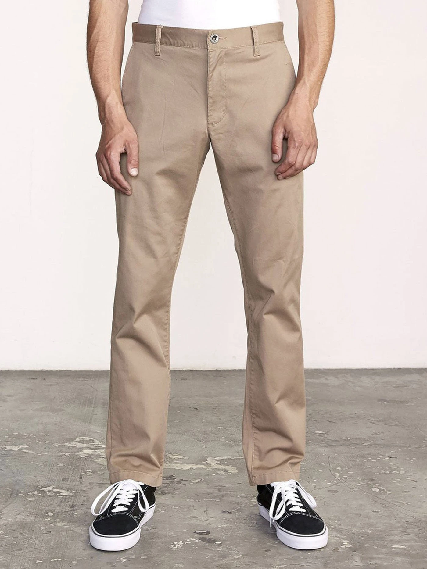 A classic, straight fit that’s stretchy and comfortable. The RVCA Weekend has everything you want in a pant. Crafted from durable and resistant fabric, these men’s pants feature a zipper fly, summary closure, front coin pocket, front slash pockets, and back welt pockets with signature RVCA solo labeling.