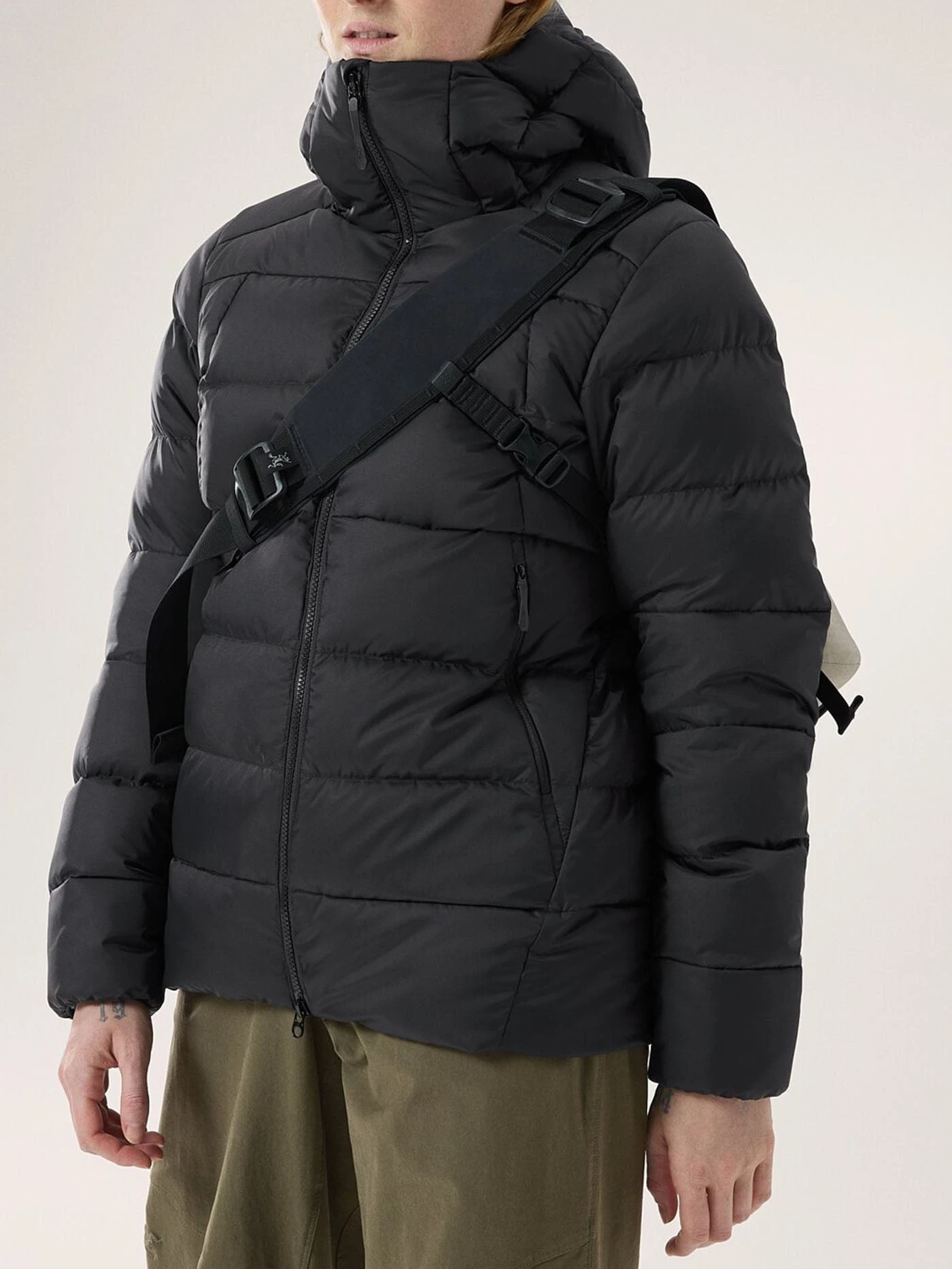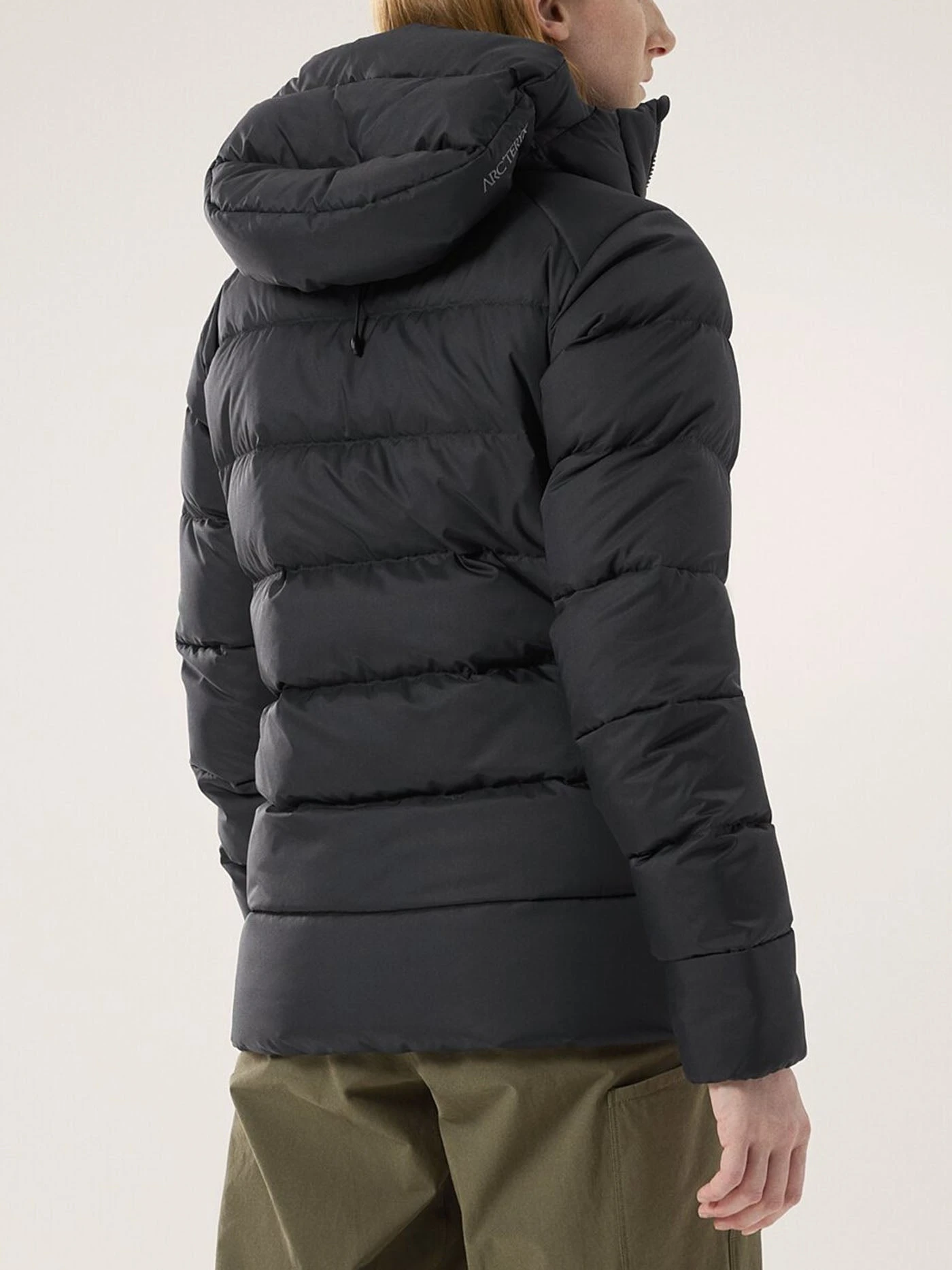 A proven hoody for cold, dry conditions, the Thorium delivers serious warmth and handles a wide range of environments. Packed with 750 fill-power Responsible Down Standard certified grey goose down, it offers outstanding thermal performance for its weight. Down Composite Mapping™ strategically places Coreloft™ synthetic insulation in areas prone to moisture. The light, durable Arato™ 30 nylon shell has a DWR treatment for water repellency, the liner ‘s bio-derived material reduces petroleum use, and the insulated adjustable hood fits over a helmet.