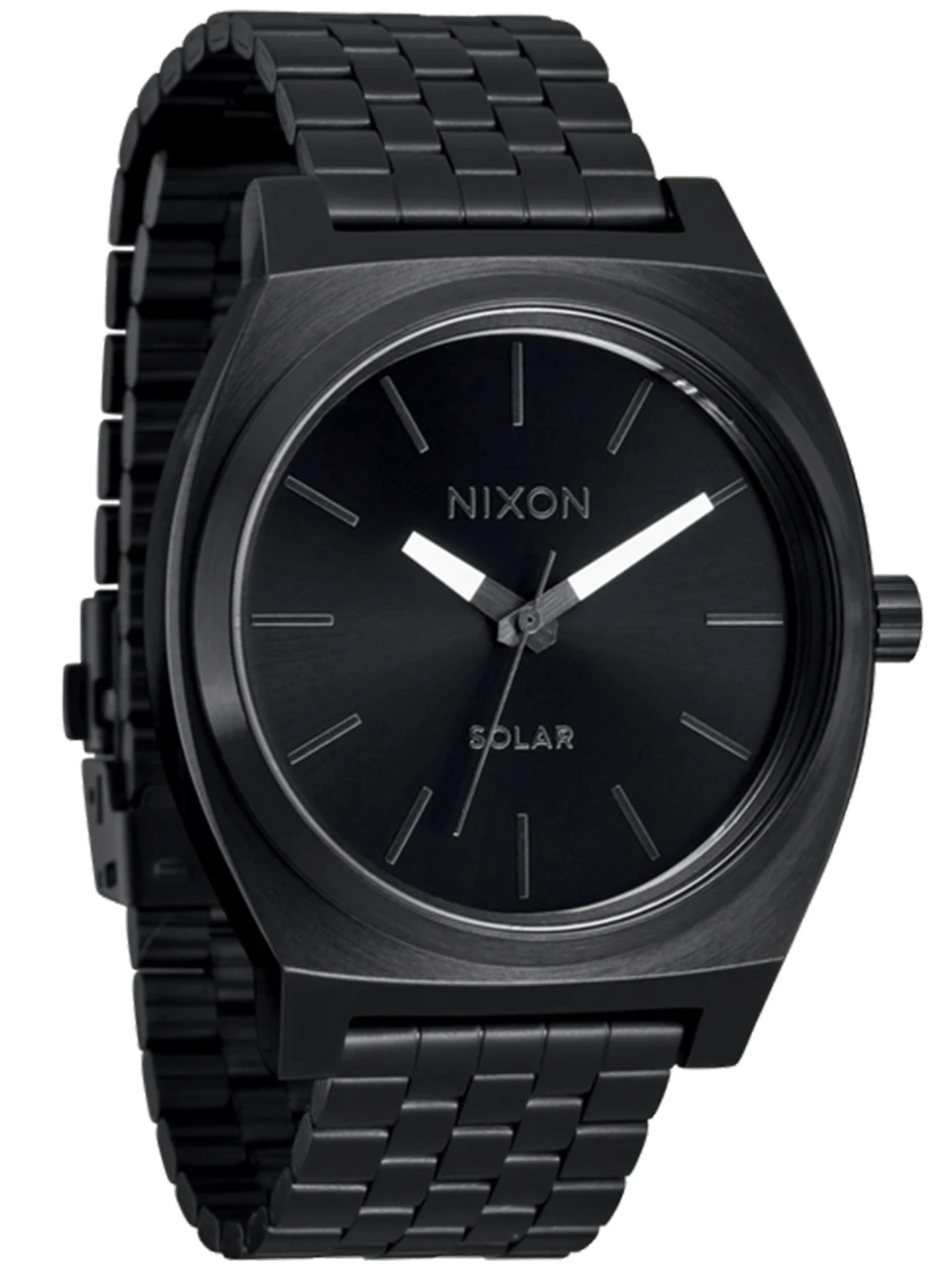 A true Nixon icon just got supercharged. Introducing the new Time Teller Solar. Built with the simple sophistication you know and love, the Time Teller Solar features a bigger case at 40mm, a new quick release 5-link bracelet with a deployment clasp that can be adjusted without a tool, and a 100m / 10 ATM waterproof rating. This watch is ready to make you look and feel good wherever you go.