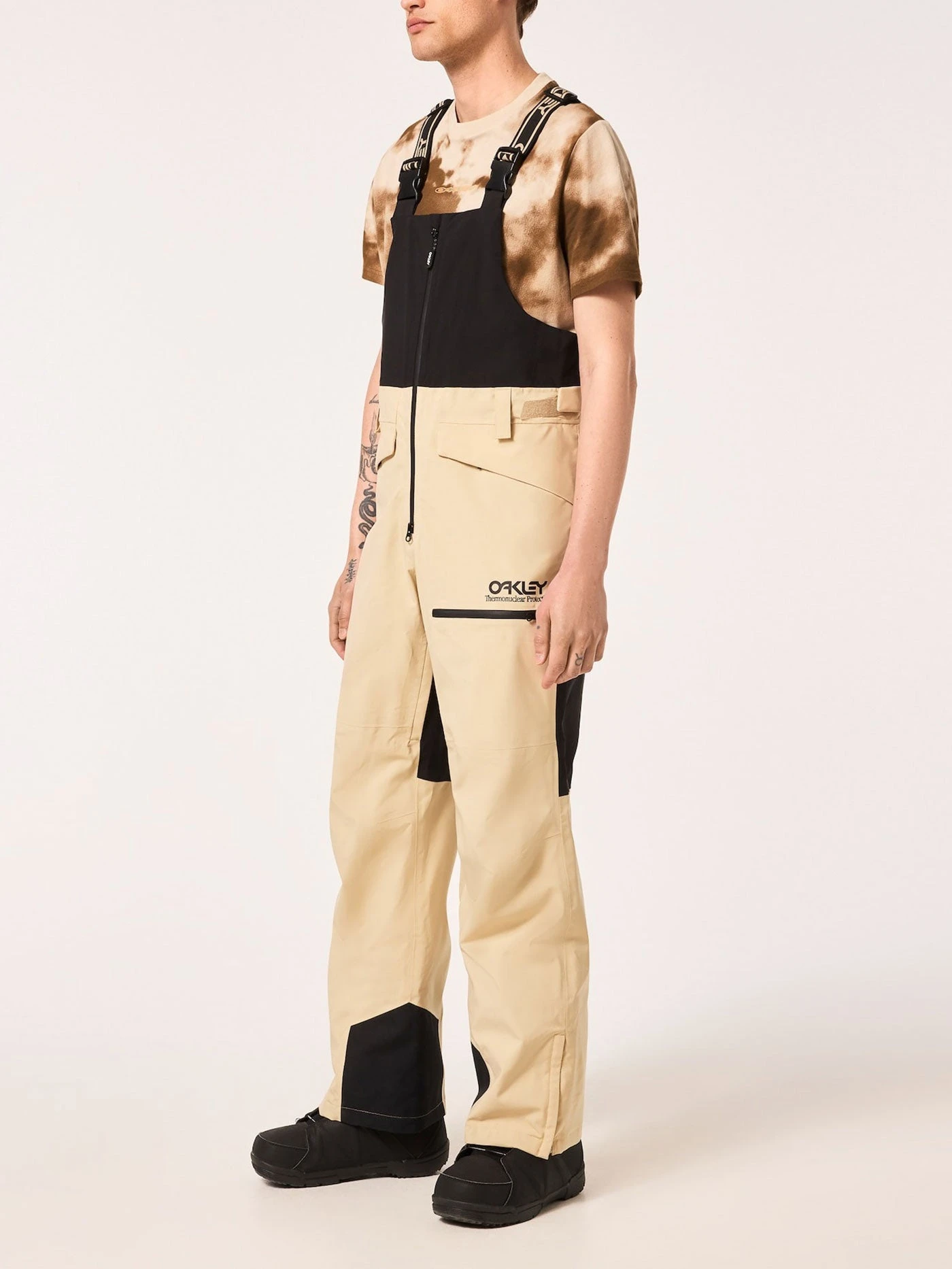 Taking inspiration from the iconic Thermonuclear Protection line with it’s bright colors, bold designs and historic Oakley logos, the TNP Shell Bib takes you from snowboarding to skiing- and beyond in style and comfort. Integrated suspenders with inner grips and a two-way center zipper provide superb functionality, while interior thigh vents allow on-demand cooling when needed. The FN Dry™ 10K lamination and O-Protect DWR technology resist moisture while providing breathability, and interior boot gaiters and zippered ankle gussets provide added snow protection.