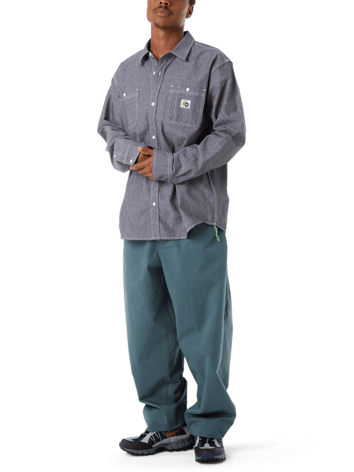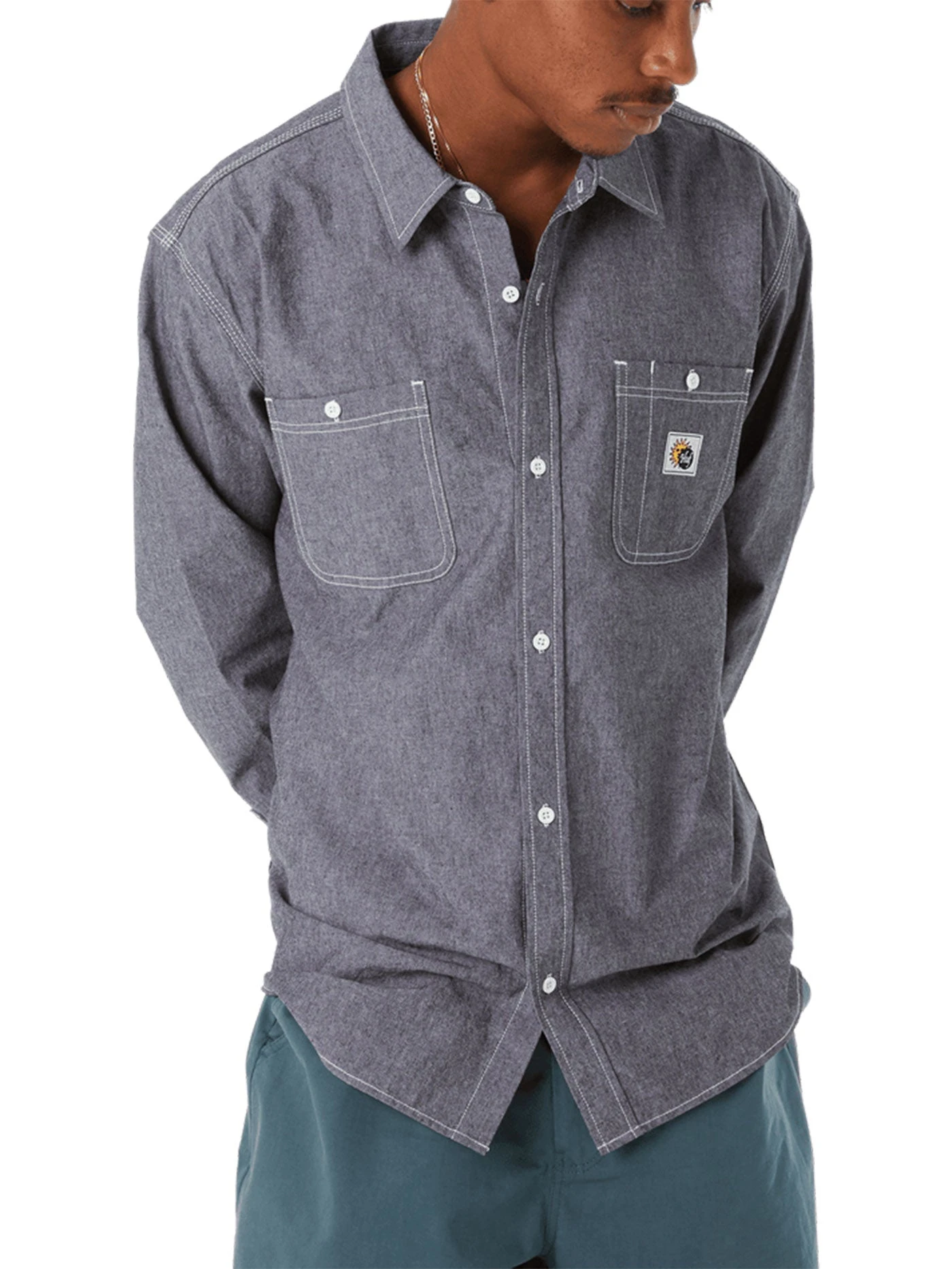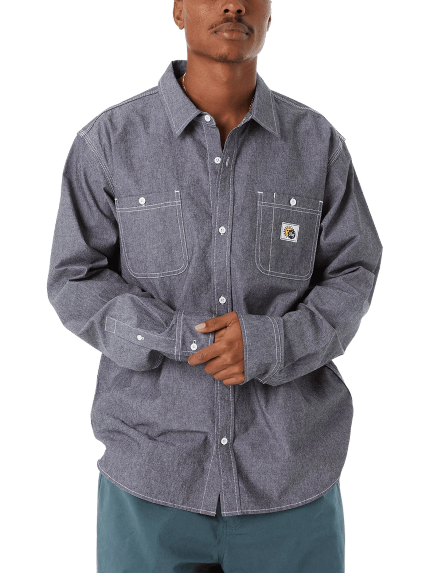 Combining timeless aesthetics with chain-stitch details and a custom woven chest pocket patch, the Total Eclipse Chambray Shirt offers casual summary-down style and a 100% cotton construction.