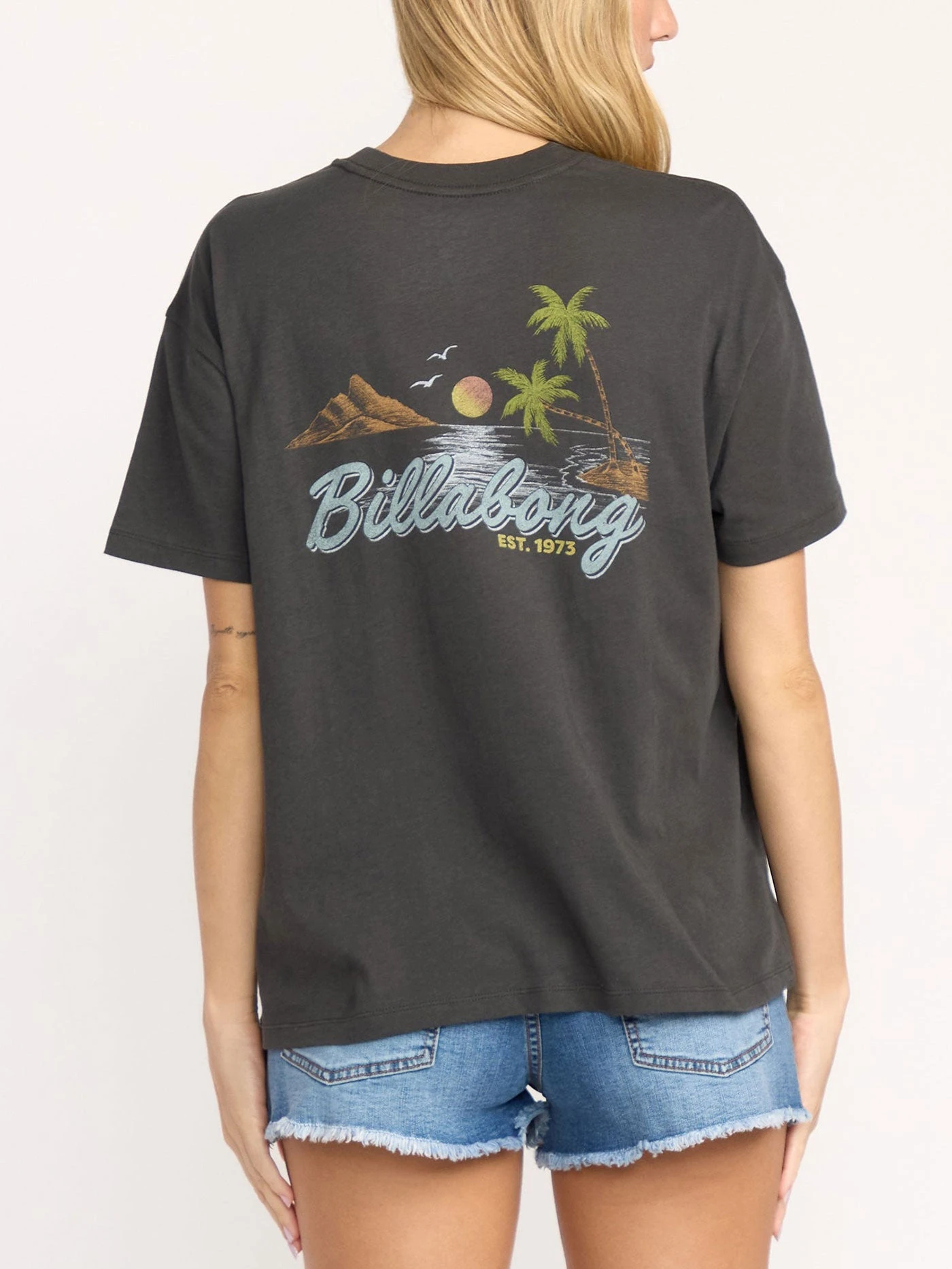 Our cotton jersey tee exudes casual cool with a relaxed tomboy fit, classic crew neck, and trendy screen-printed graphic.