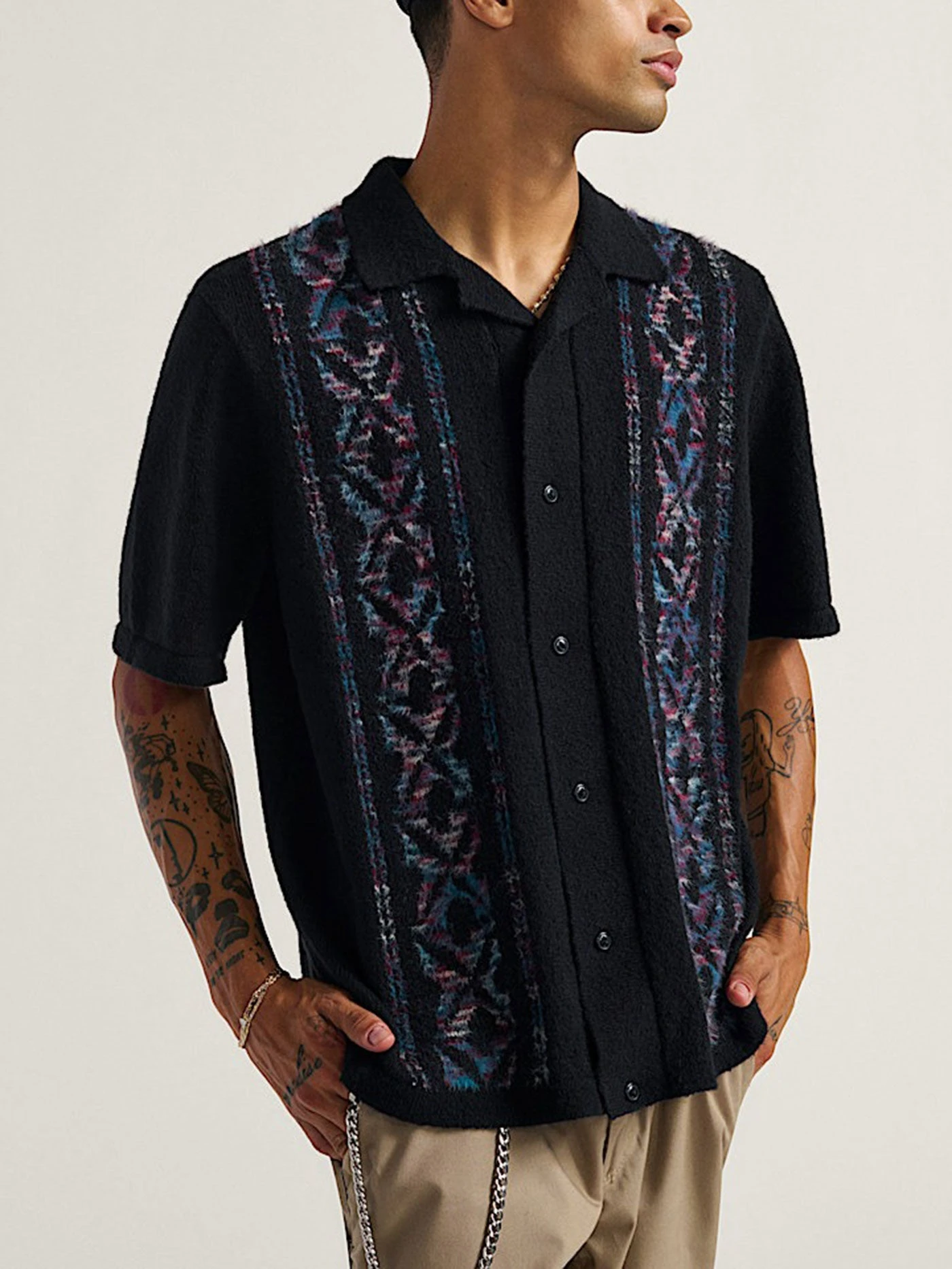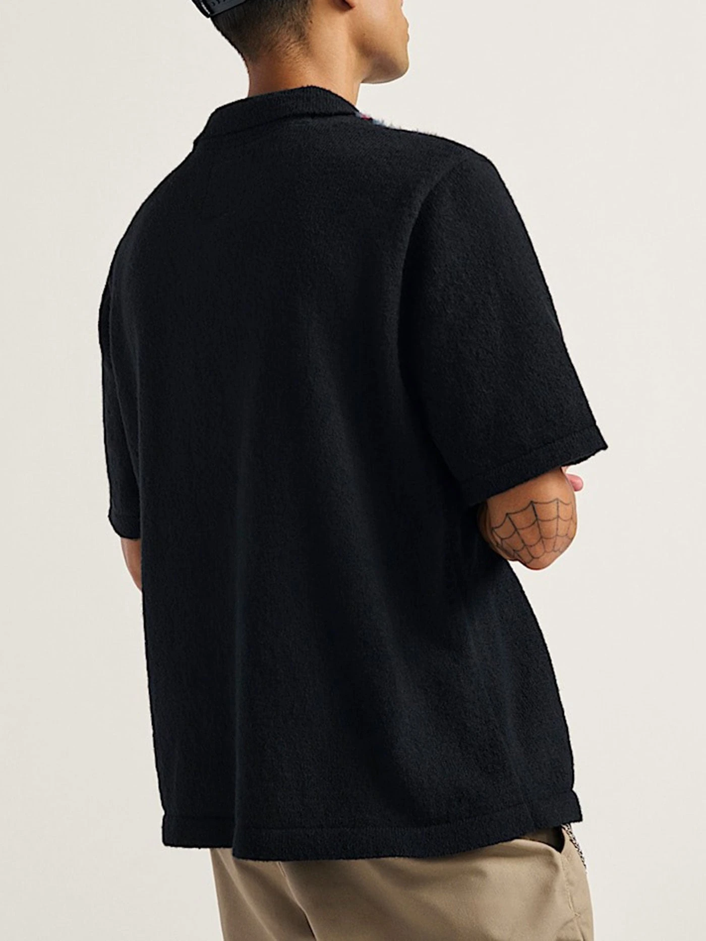 The retro summary down gets a new life with the Wheeler Polo Sweater, with short sleeves for a casual, everyday style and a fuzzy knit for added coziness. Engineered jacquard artwork adds elevated visual details to either side of the summary closure front, combining Vans edge with retro cool.