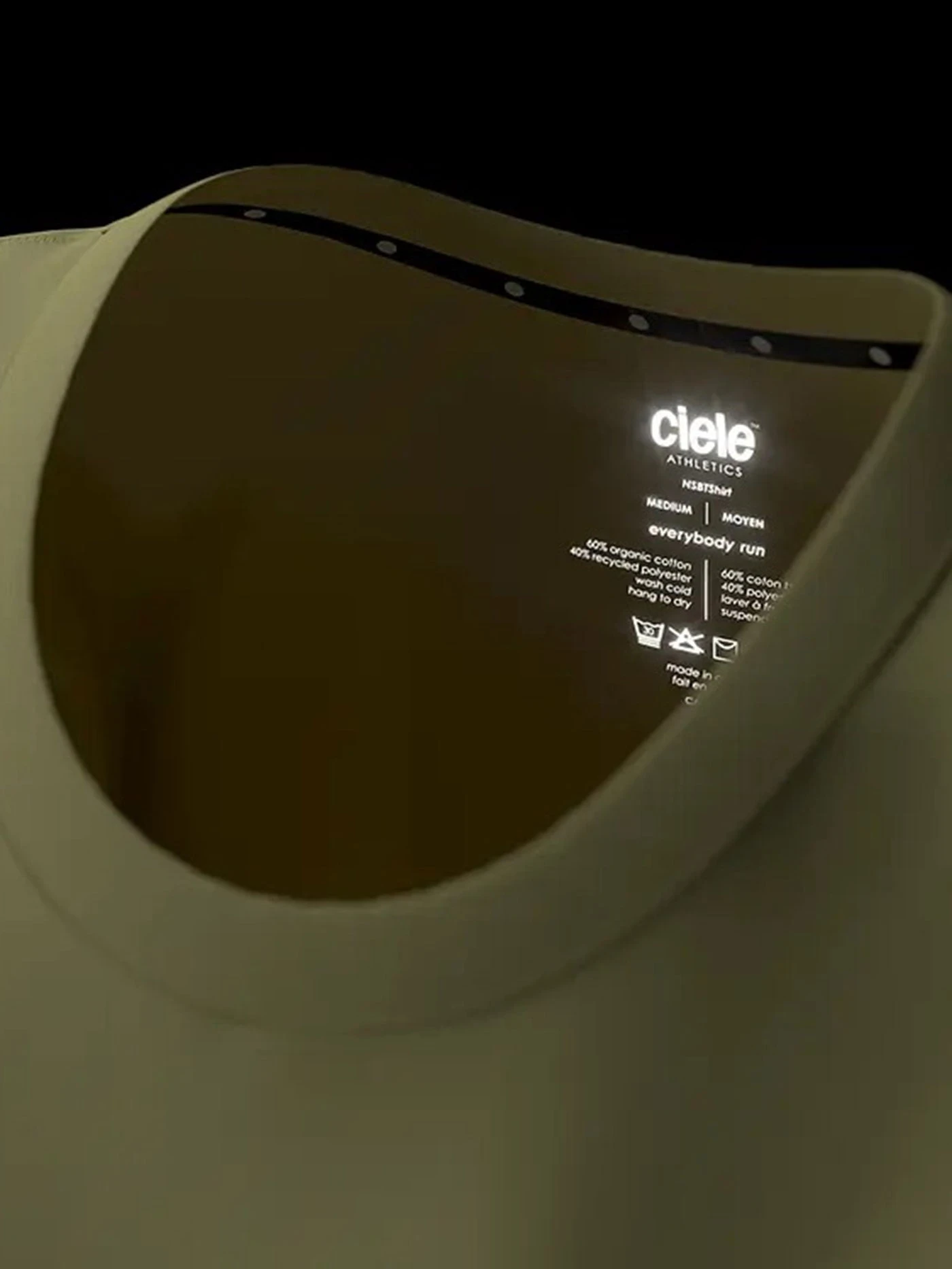 represent, represent. with our original Ciele Athletics logo front and center, the WNSBTShirt – Athletics – trooper edition uses the comfort and cooling effect of organic cotton, in combination with recycled polyester to bring you a moisture wicking, quick drying run ready t-shirt. we’ve added concealable reflective details, for that unplanned night run home, flatlock stitching for comfort, and an all natural antimicrobial to defend against unwanted odours and harmful microbes that plague your everyday activewear. the water based print is designed with breathability in mind, so it won’t get wet and sticky and uncomfortable like most printed t’s do during a run.