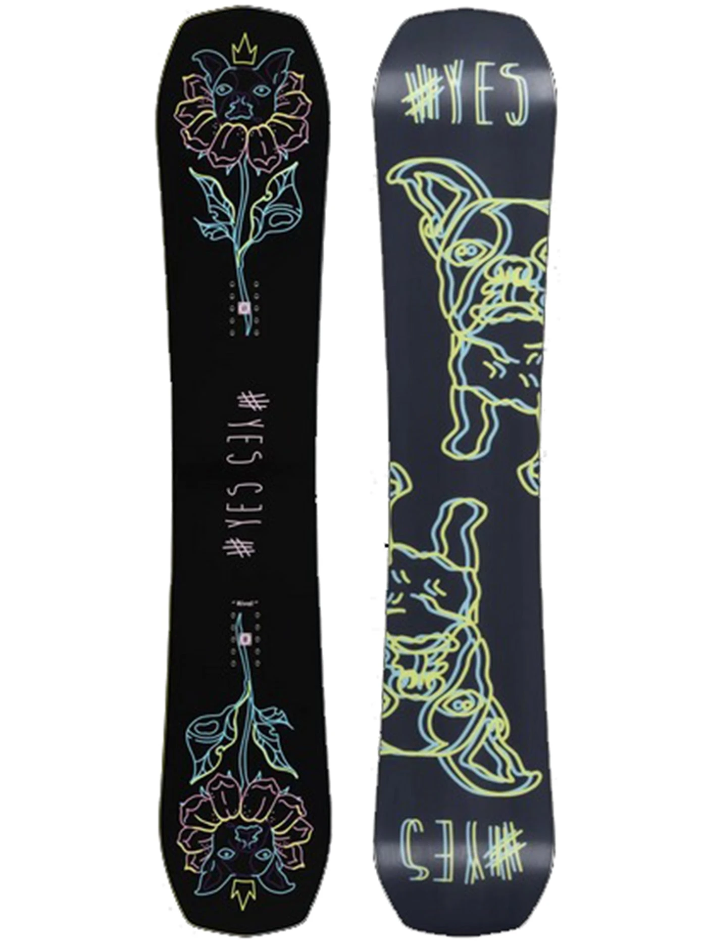 To capture the spirit of this exceptional snowboard, the artwork was meti- culously crafted by Crystal Legoffe (@not.enough.ram), a talented Whistler local and dedicated YES. boards enthusiast. Crystal collaborated closely with Juliette during the graphic’s creation, resulting in a design that perfectly embodies the board’s essence.