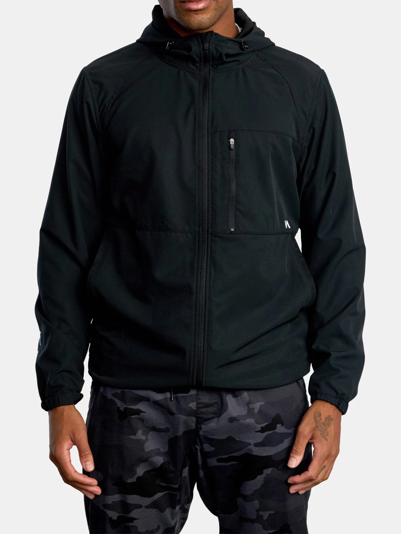 THE RVCA YOGGER ZIP-UP HOODED JACKET II OFFERS ULTIMATE PROTECTION AND STYLE FOR DAYS. MADE FROM SUSTAINABLE 4-WAY STRETCH, THIS MEN’S HOODED JACKET FEATURES A FRONT ZIP CLOSURE, ELASTIC HEM AND CUFFS, ADJUSTABLE TOGGLES AT THE HOOD AND POCKETS THROUGHOUT FOR YOUR NEEDS. TOPPED WITH VA BRANDING.